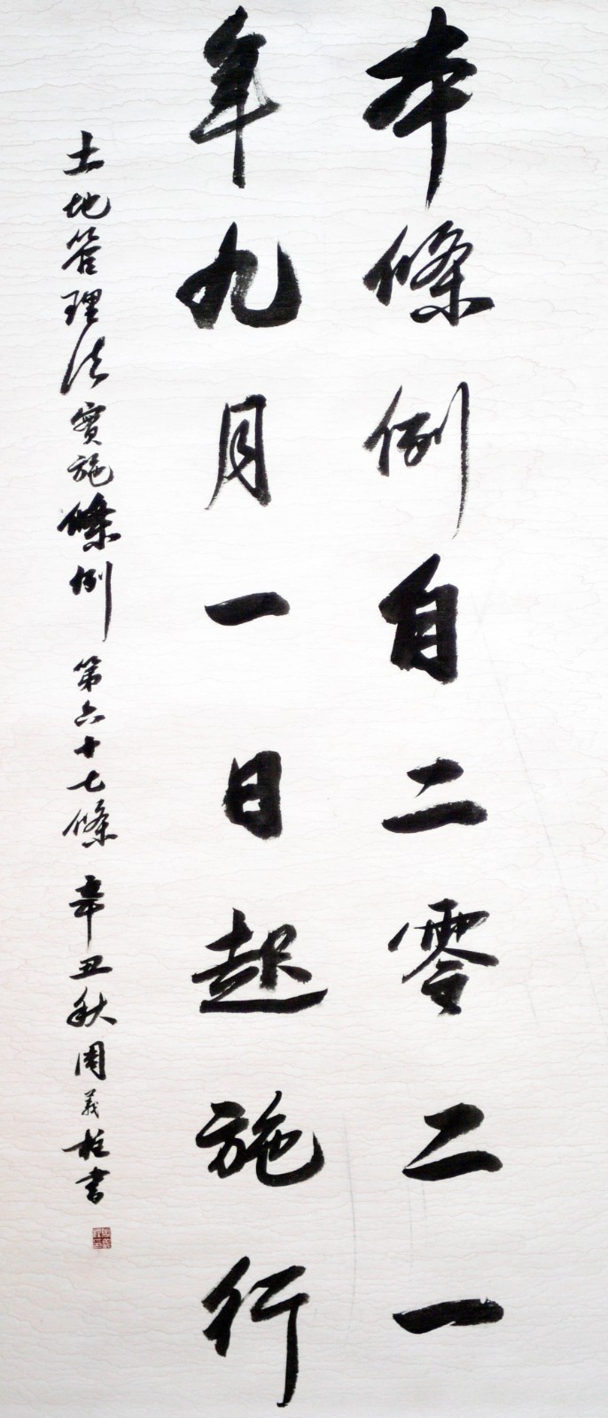 繼1600余位書法家參與書寫《中華人民共和國民法典》全部1260條法條之后,法治日報社聯(lián)合自然資源部法規(guī)司、自然資源部書畫研究會和北京昌平書法家協(xié)會,將筆端對準土地管理“一法一條例”,即《中華人民共和國土地管理法》和《中華人民共和國土地管理法實施條例》。