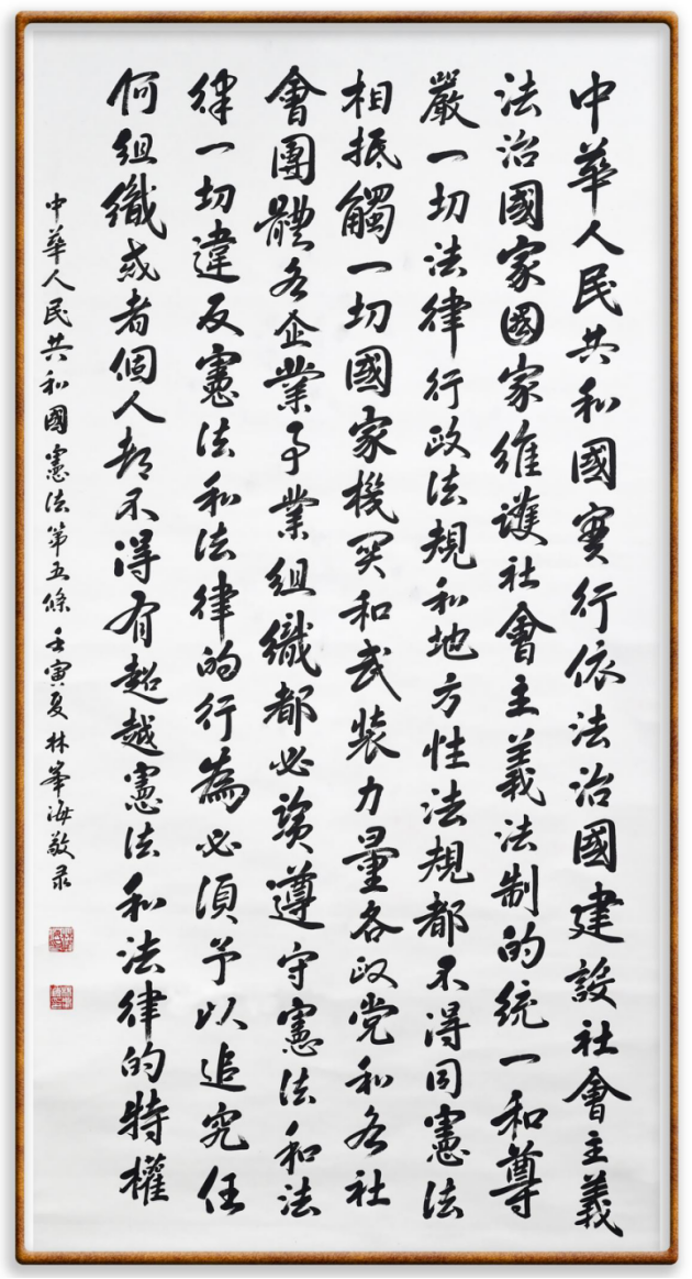 繼《中華人民共和國民法典》《中華人民共和國土地管理法》《中華人民共和國土地管理法實(shí)施條例》《中華人民共和國法律援助法》之后,法治日報社聯(lián)合北京市司法局、北京書法家協(xié)會,將筆端對準(zhǔn)《中華人民共和國憲法》和《中華人民共和國行政處罰法》。