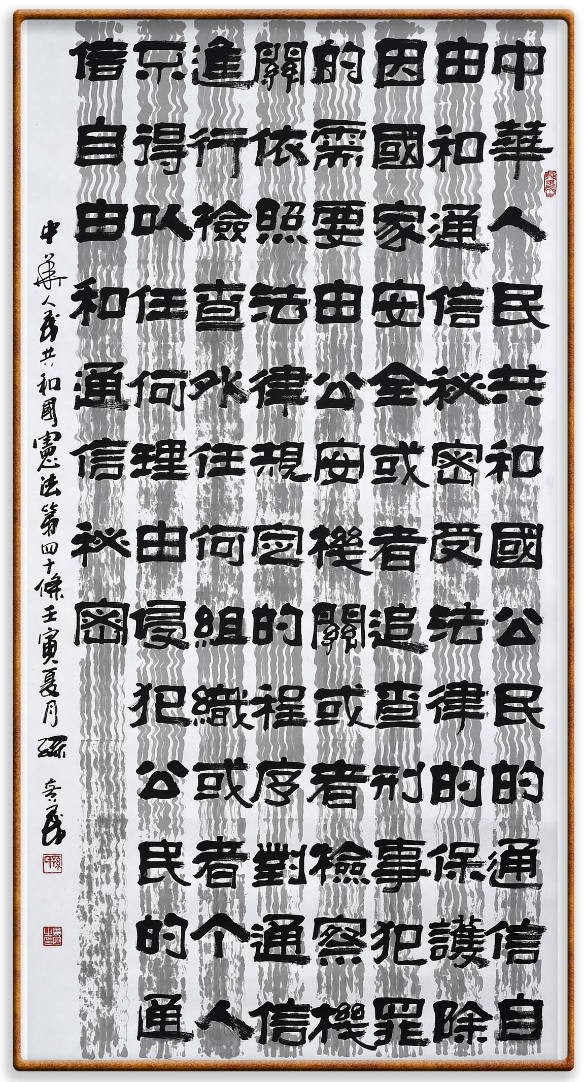 繼《中華人民共和國(guó)民法典》《中華人民共和國(guó)土地管理法》《中華人民共和國(guó)土地管理法實(shí)施條例》《中華人民共和國(guó)法律援助法》之后,法治日?qǐng)?bào)社聯(lián)合北京市司法局、北京市書(shū)法家協(xié)會(huì),將筆端對(duì)準(zhǔn)《中華人民共和國(guó)憲法》和《中華人民共和國(guó)行政處罰法》。
