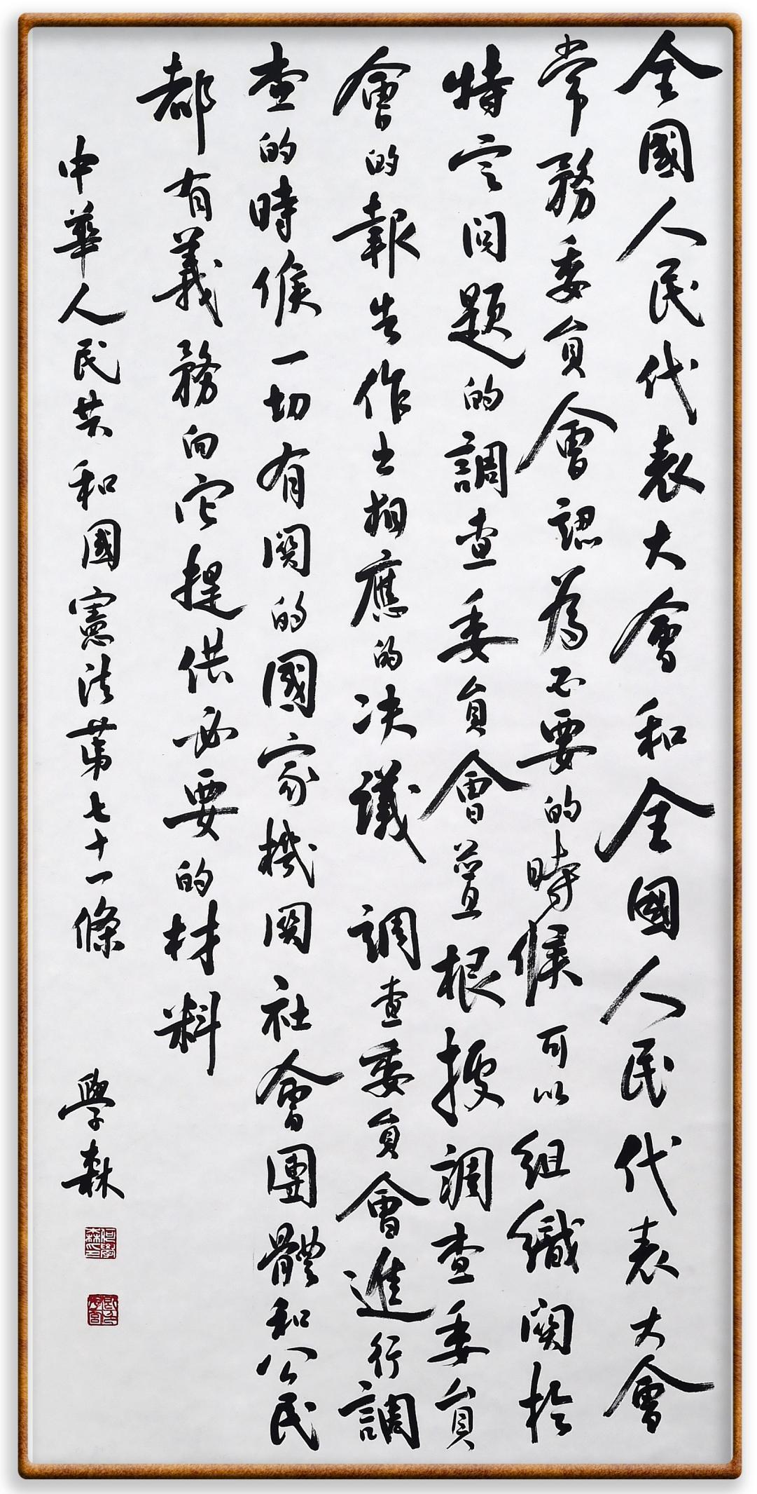 繼《中華人民共和國民法典》《中華人民共和國土地管理法》《中華人民共和國土地管理法實施條例》《中華人民共和國法律援助法》之后,法治日報社聯(lián)合北京市司法局、北京書法家協(xié)會,將筆端對準《中華人民共和國憲法》和《中華人民共和國行政處罰法》。