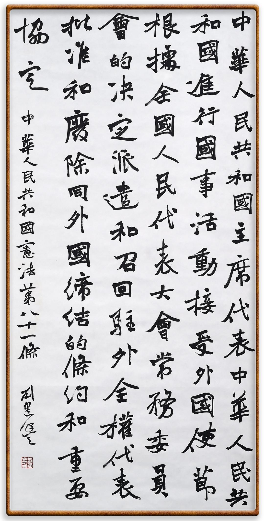 繼《中華人民共和國民法典》《中華人民共和國土地管理法》《中華人民共和國土地管理法實(shí)施條例》《中華人民共和國法律援助法》之后,法治日?qǐng)?bào)社聯(lián)合北京市司法局、北京書法家協(xié)會(huì),將筆端對(duì)準(zhǔn)《中華人民共和國憲法》和《中華人民共和國行政處罰法》。