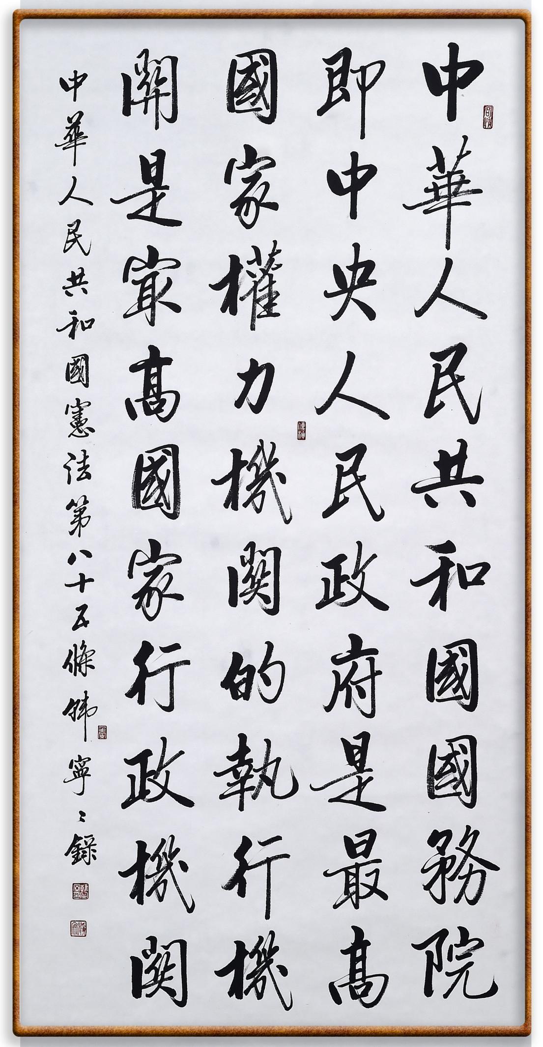 繼《中華人民共和國民法典》《中華人民共和國土地管理法》《中華人民共和國土地管理法實施條例》《中華人民共和國法律援助法》之后,法治日報社聯(lián)合北京市司法局、北京書法家協(xié)會,將筆端對準《中華人民共和國憲法》和《中華人民共和國行政處罰法》。