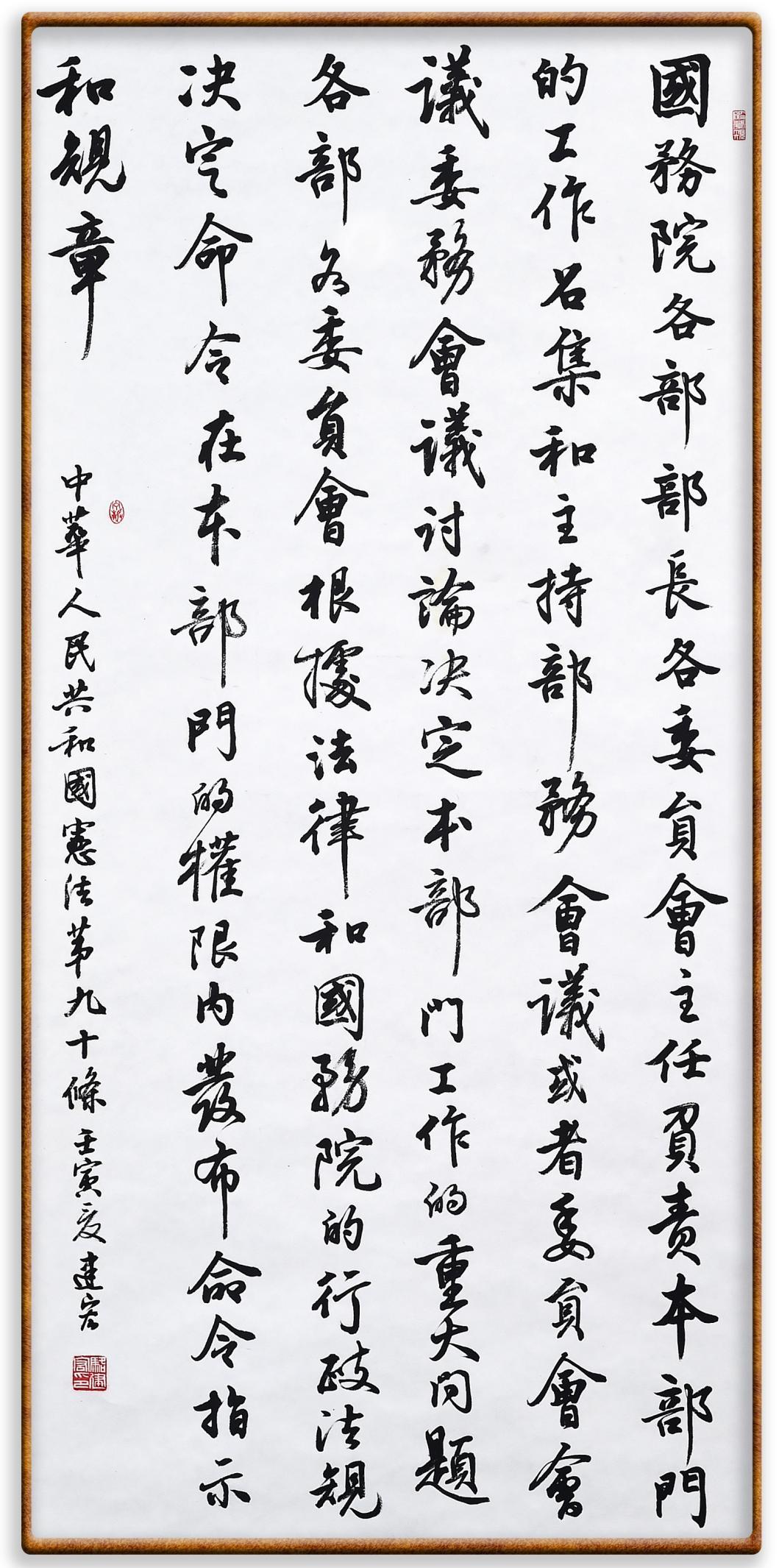 繼《中華人民共和國民法典》《中華人民共和國土地管理法》《中華人民共和國土地管理法實施條例》《中華人民共和國法律援助法》之后,法治日報社聯(lián)合北京市司法局、北京書法家協(xié)會,將筆端對準《中華人民共和國憲法》和《中華人民共和國行政處罰法》。