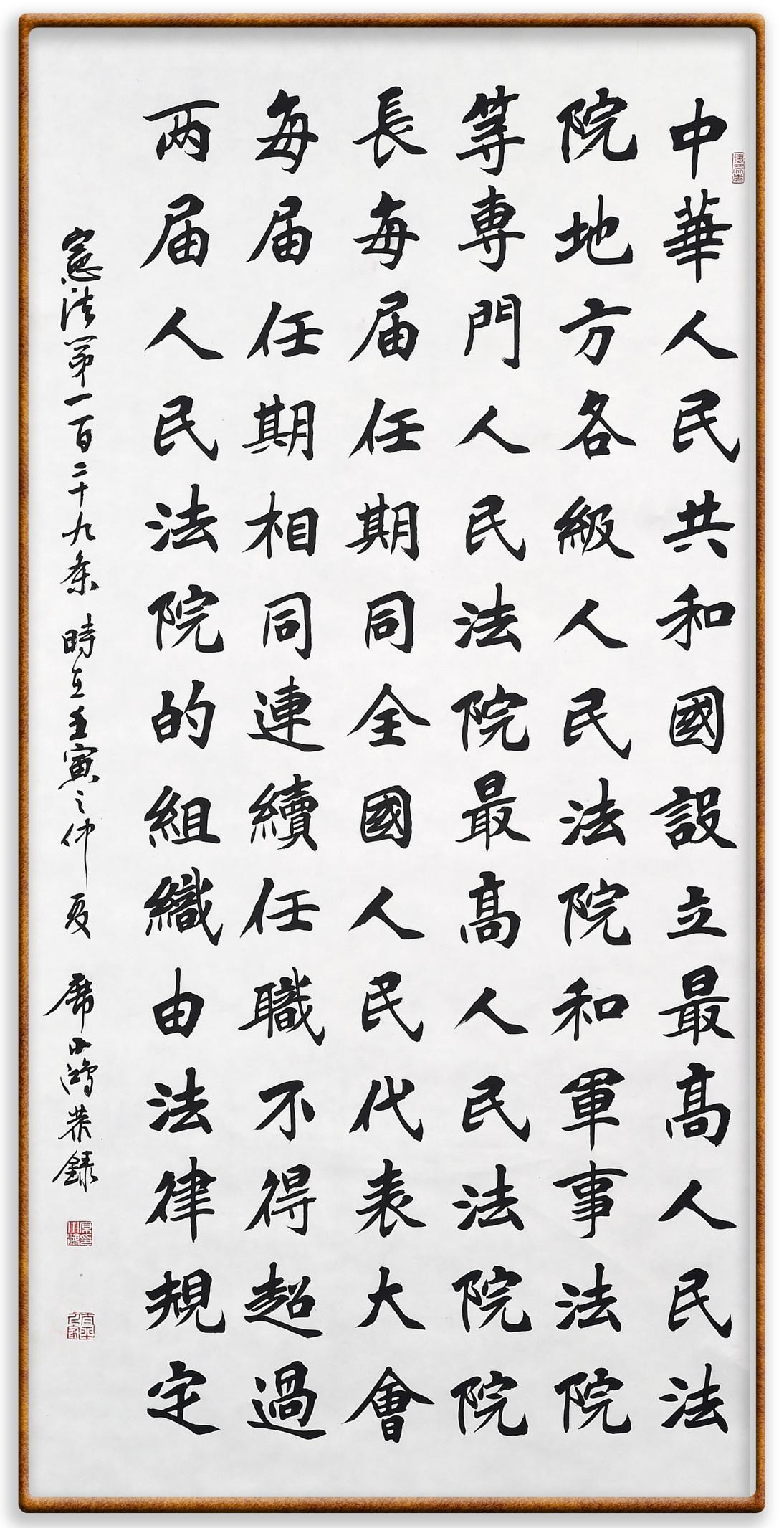 繼《中華人民共和國民法典》《中華人民共和國土地管理法》《中華人民共和國土地管理法實施條例》《中華人民共和國法律援助法》之后,法治日報社聯(lián)合北京市司法局、北京書法家協(xié)會,將筆端對準《中華人民共和國憲法》和《中華人民共和國行政處罰法》。
