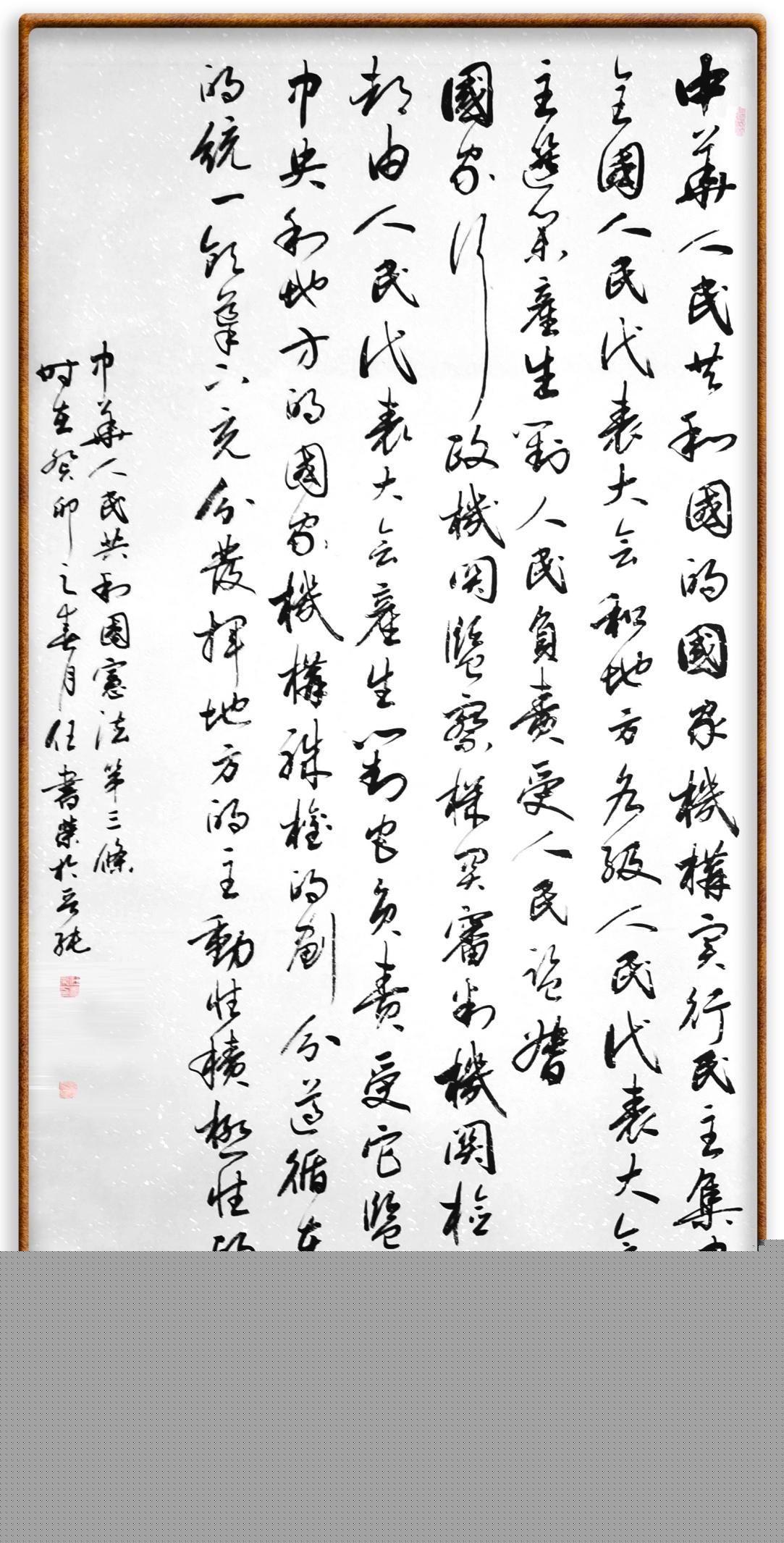 繼《中華人民共和國民法典》《中華人民共和國土地管理法》《中華人民共和國土地管理法實施條例》《中華人民共和國法律援助法》之后,法治日報社聯合北京市司法局、北京書法家協會,將筆端對準《中華人民共和國憲法》和《中華人民共和國行政處罰法》。