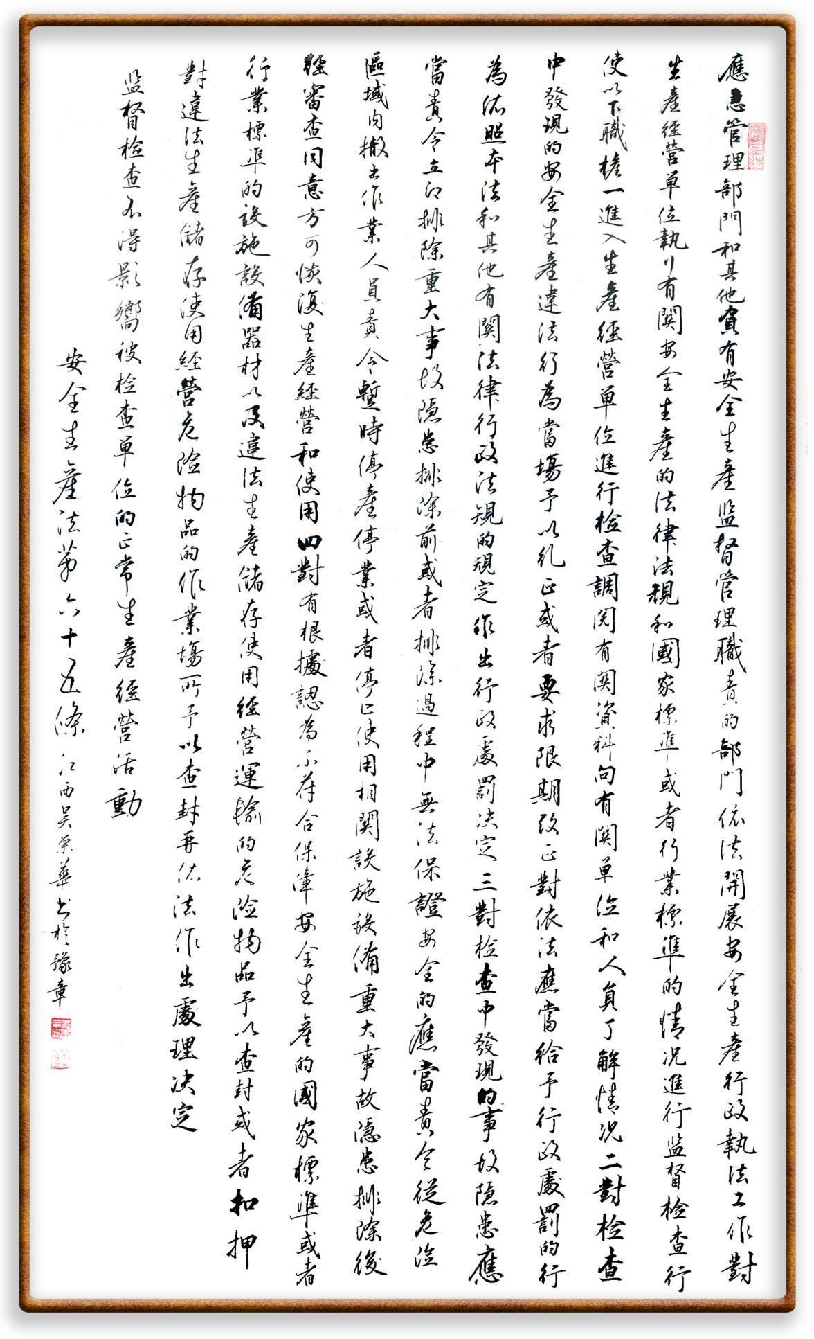 (二)對檢查中發(fā)現(xiàn)的安全生產(chǎn)違法行為,當場予以糾正或者要求限期改正;對依法應當給予行政處罰的行為,依照本法和其他有關法律、行政法規(guī)的規(guī)定作出行政處罰決定;
