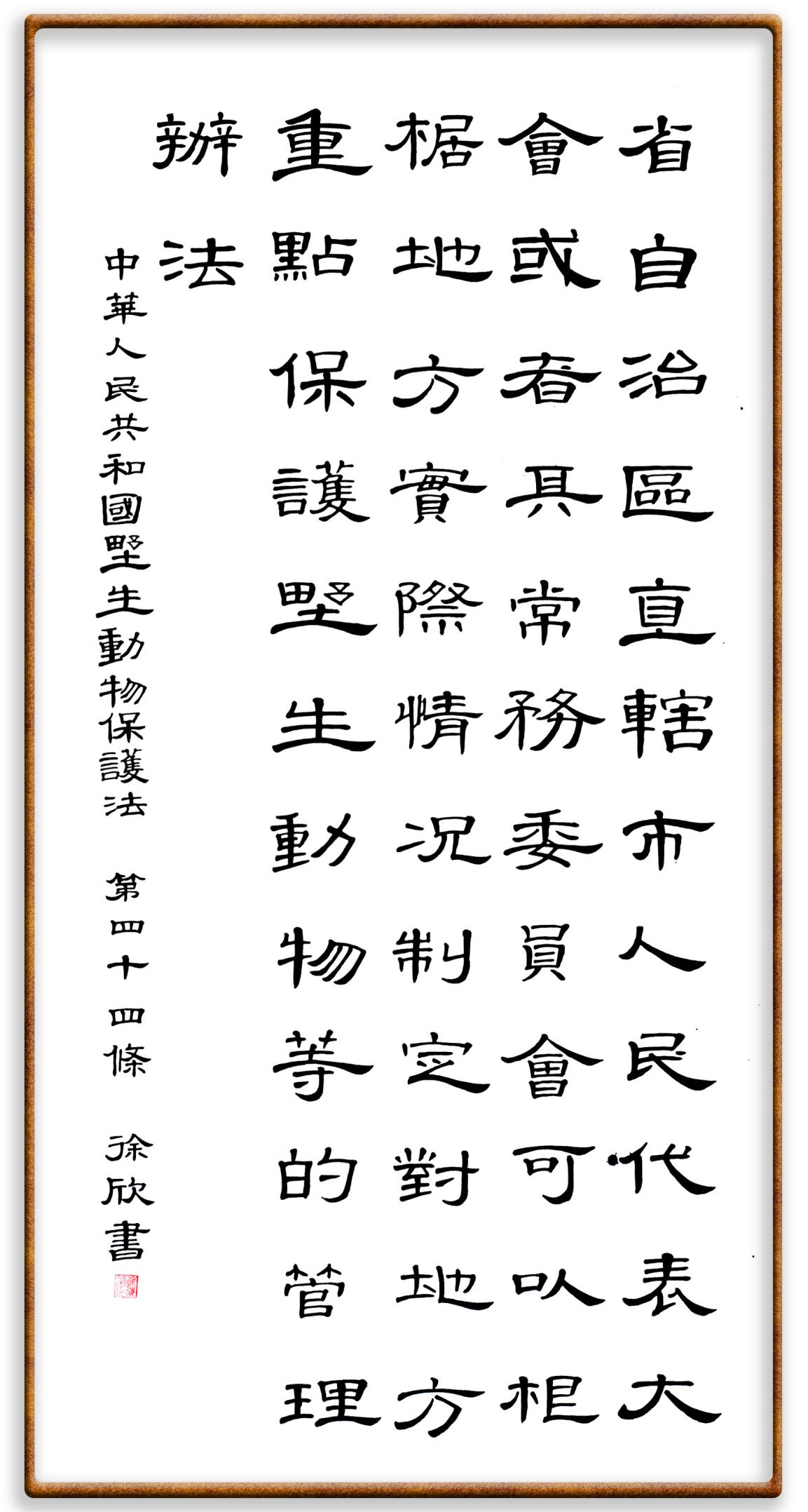書·法|徐欣:野生動物保護法第四十四條