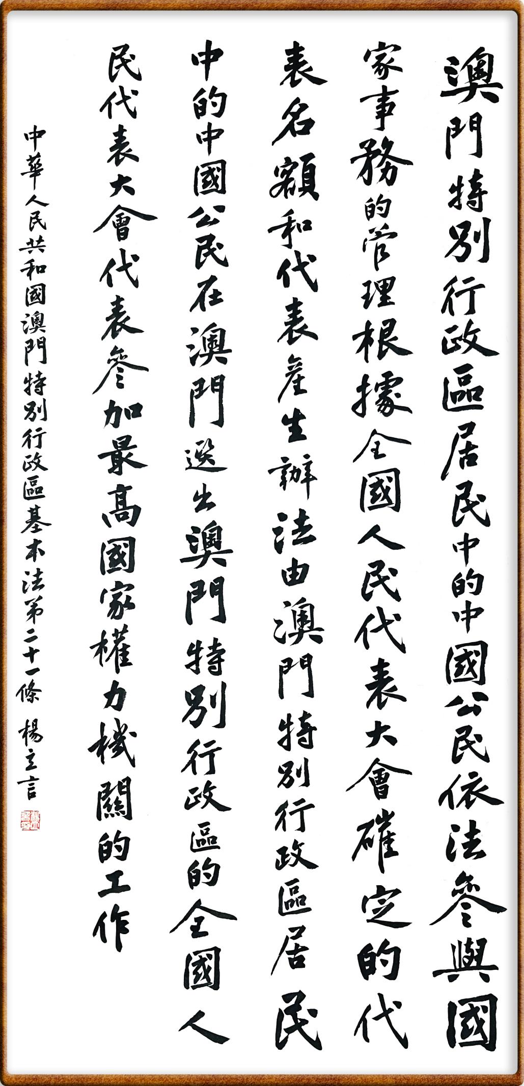 澳門基本法第二十一條 澳門特別行政區(qū)居民中的中國公民依法參與國家事務(wù)的管理。