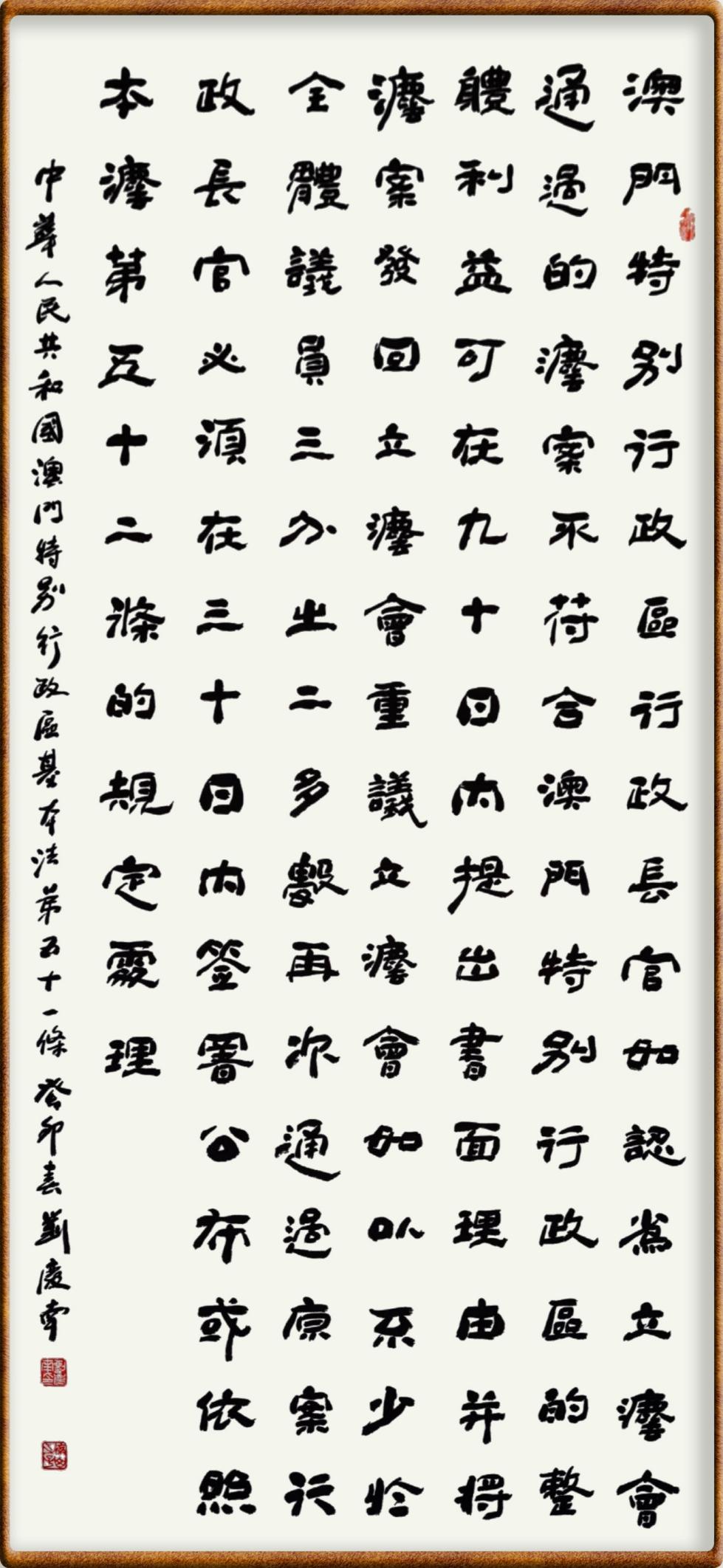 澳門基本法第五十一條 澳門特別行政區(qū)行政長官如認為立法會通過的法案不符合澳門特別行政區(qū)的整體利益,可在九十日內(nèi)提出書面理由并將法案發(fā)回立法會重議。立法會如以不少于全體議員三分之二多數(shù)再次通過原案,行政長官必須在三十日內(nèi)簽署公布或依照本法第五十二條的規(guī)定處理。