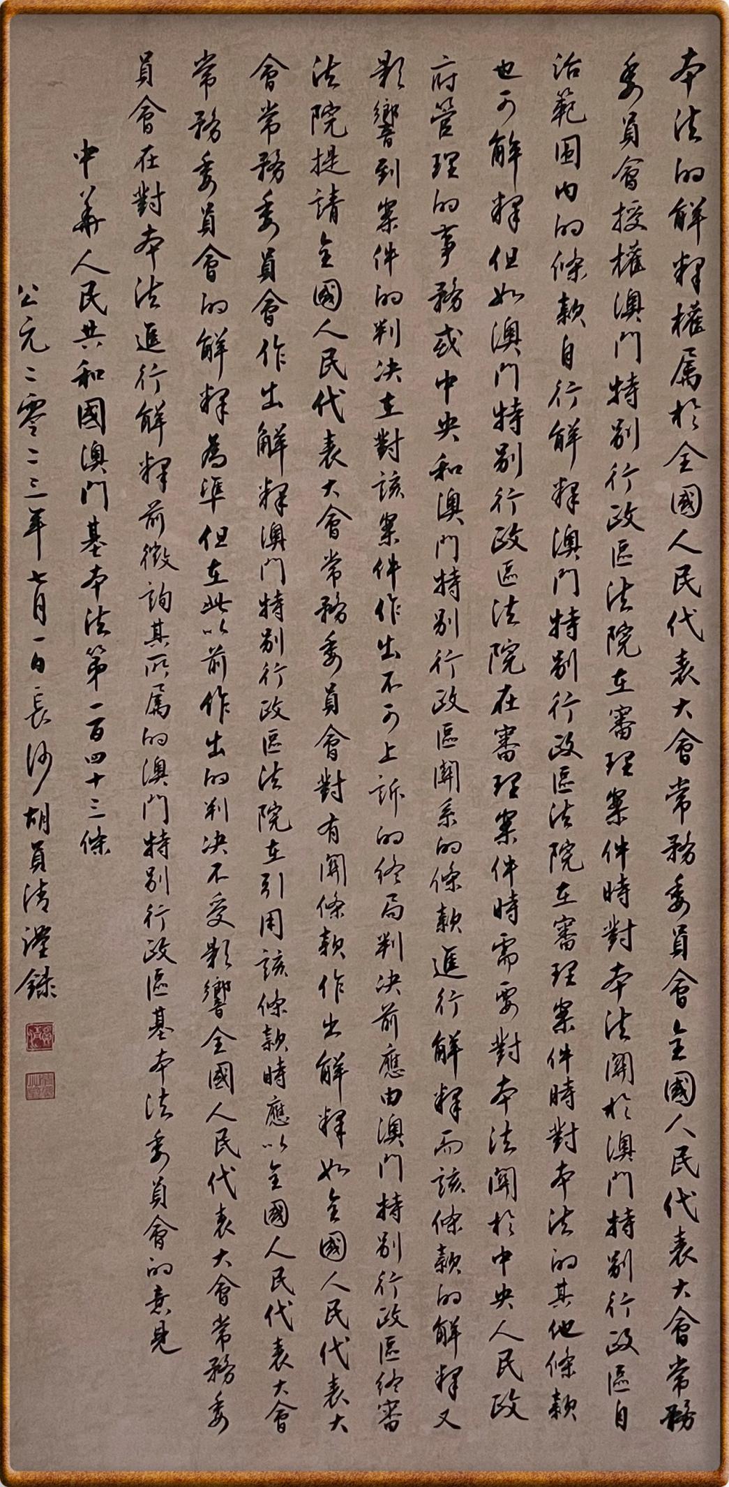 澳門基本法第一百四十三條 本法的解釋權(quán)屬于全國人民代表大會(huì)常務(wù)委員會(huì)。