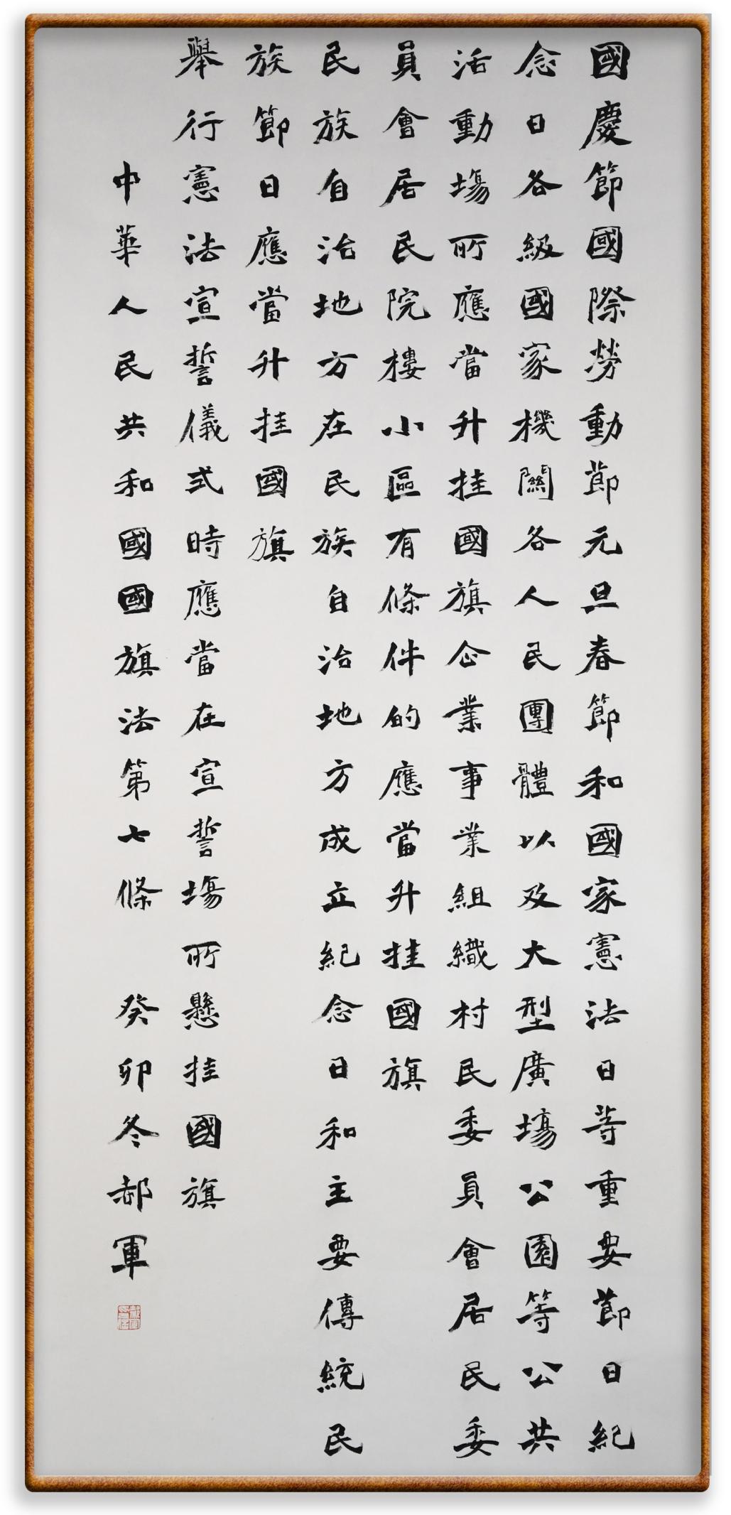 國(guó)旗法第七條 國(guó)慶節(jié)、國(guó)際勞動(dòng)節(jié)、元旦、春節(jié)和國(guó)家憲法日等重要節(jié)日、紀(jì)念日,各級(jí)國(guó)家機(jī)關(guān)、各人民團(tuán)體以及大型廣場(chǎng)、公園等公共活動(dòng)場(chǎng)所應(yīng)當(dāng)升掛國(guó)旗;企業(yè)事業(yè)組織,村民委員會(huì)、居民委員會(huì),居民院(樓、小區(qū))有條件的應(yīng)當(dāng)升掛國(guó)旗。