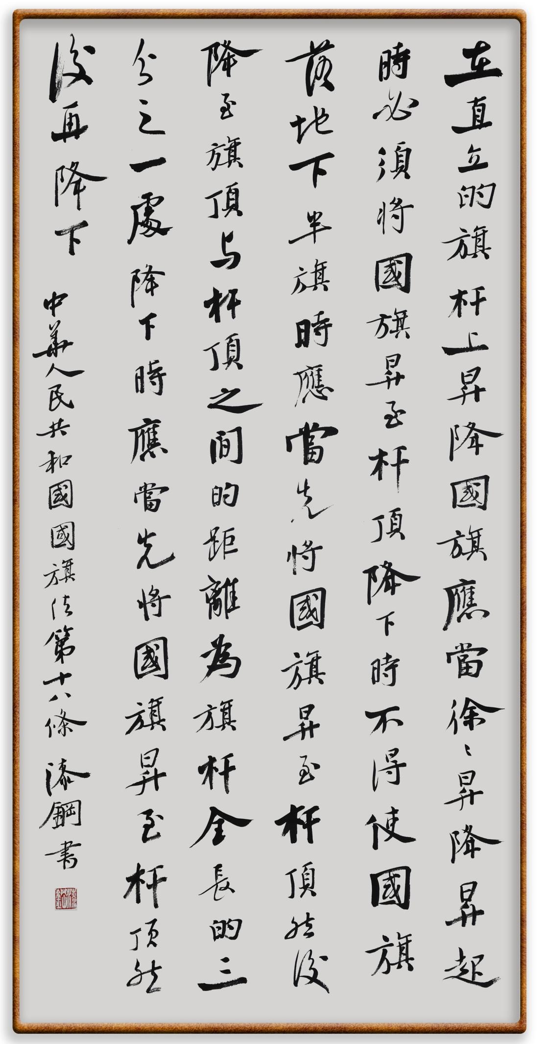 國(guó)旗法第十八條 在直立的旗桿上升降國(guó)旗,應(yīng)當(dāng)徐徐升降。升起時(shí),必須將國(guó)旗升至桿頂;降下時(shí),不得使國(guó)旗落地。