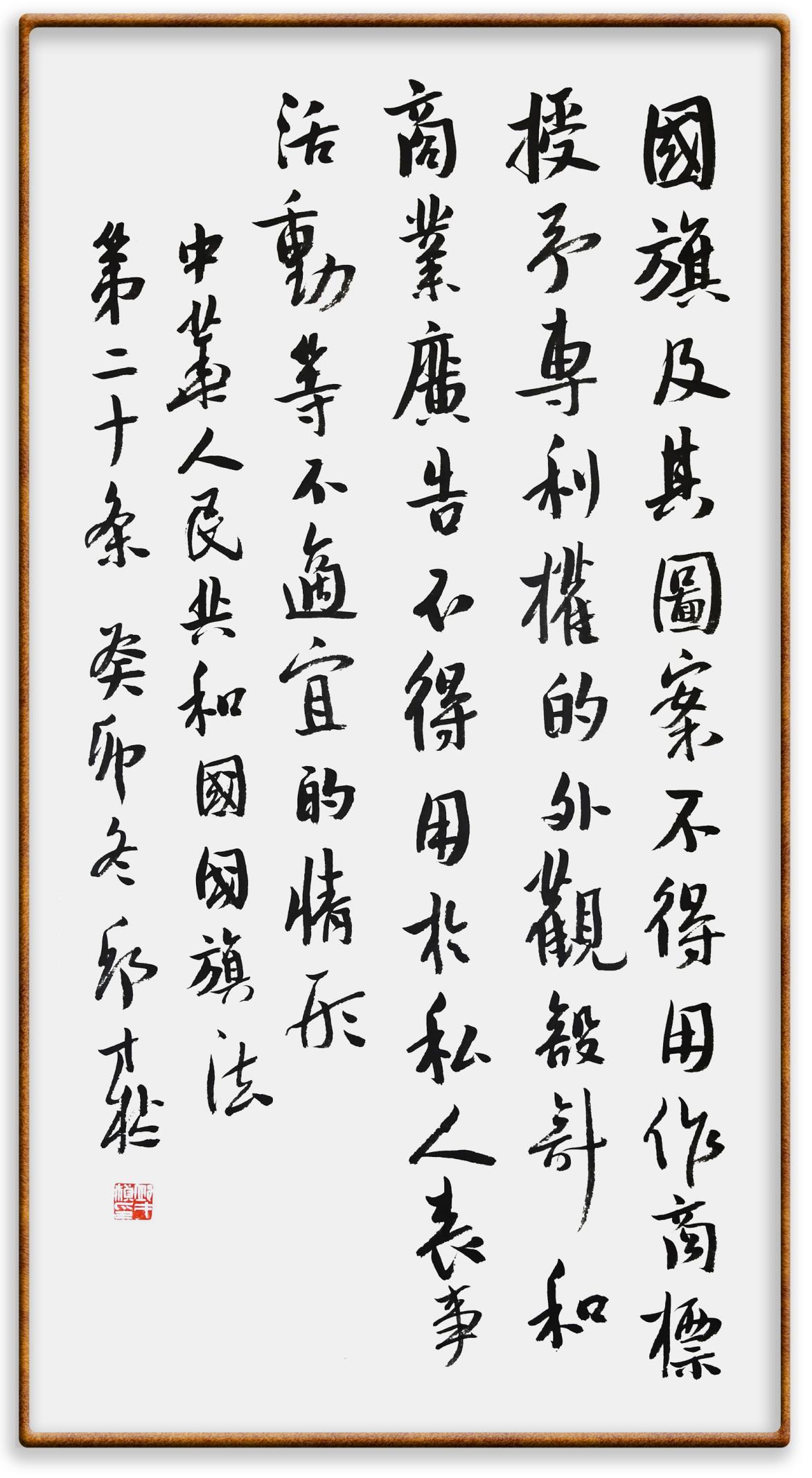 國(guó)旗法第二十條 國(guó)旗及其圖案不得用作商標(biāo)、授予專利權(quán)的外觀設(shè)計(jì)和商業(yè)廣告,不得用于私人喪事活動(dòng)等不適宜的情形。