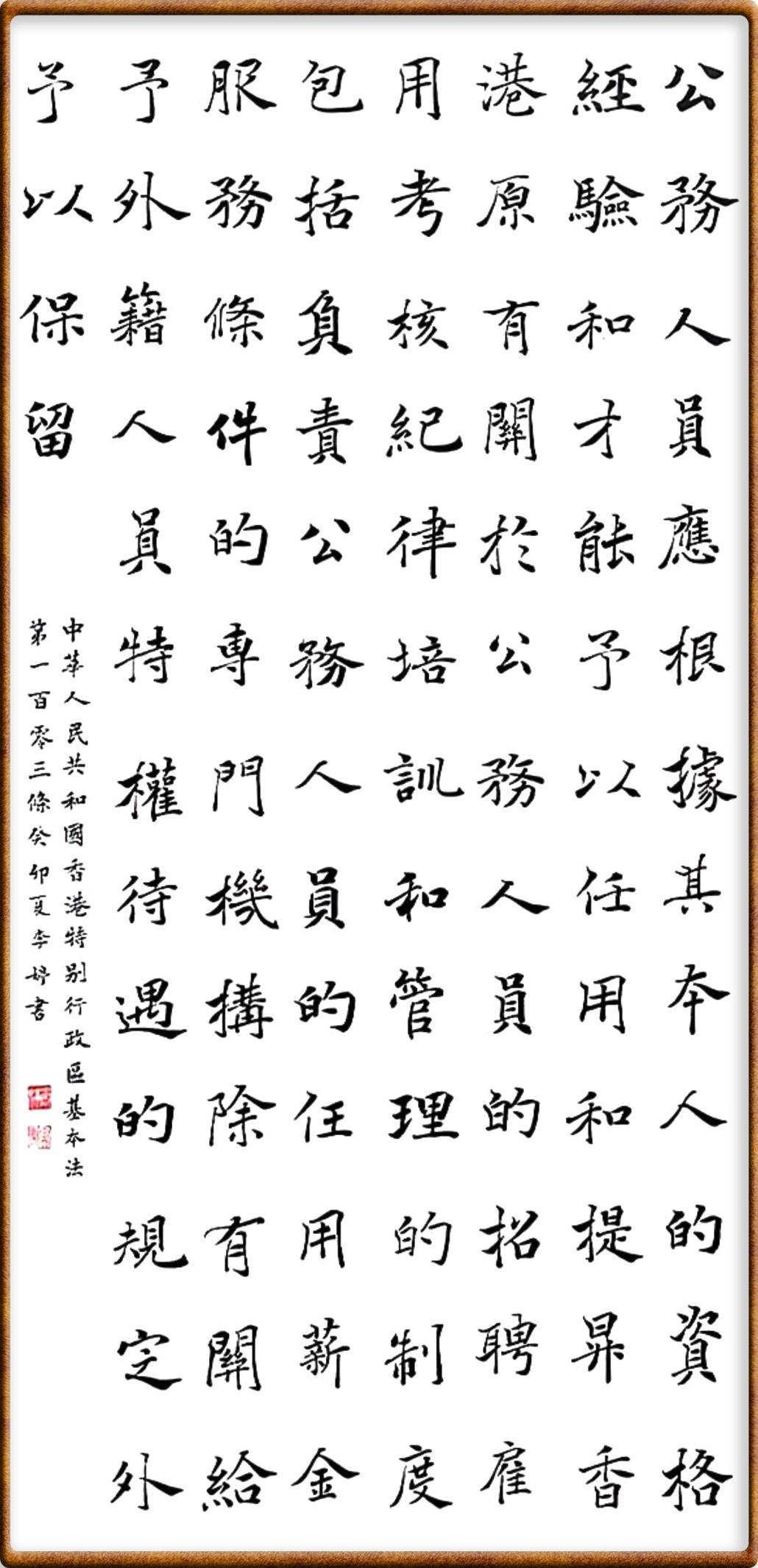 香港基本法第一百零三條 公務人員應根據(jù)其本人的資格、經(jīng)驗和才能予以任用和提升,香港原有關于公務人員的招聘、雇用、考核、紀律、培訓和管理的制度,包括負責公務人員的任用、薪金、服務條件的專門機構,除有關給予外籍人員特權待遇的規(guī)定外,予以保留。