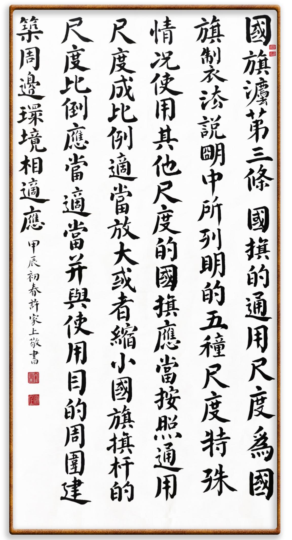 國旗法第三條 國旗的通用尺度為國旗制法說明中所列明的五種尺度。特殊情況使用其他尺度的國旗,應(yīng)當(dāng)按照通用尺度成比例適當(dāng)放大或者縮小。
