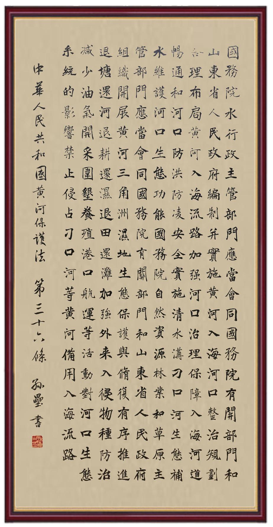 黃河寧,天下平。黃河是中華民族的發(fā)源地和搖籃,保護(hù)黃河是事關(guān)中華民族偉大復(fù)興的千秋大計(jì)?!吨腥A人民共和國(guó)黃河保護(hù)法》為推進(jìn)水資源節(jié)約集約利用、保護(hù)傳承弘揚(yáng)黃河文化、推動(dòng)黃河流域生態(tài)保護(hù)和高質(zhì)量發(fā)展提供了有力法治保障。繼書(shū)寫(xiě)《中華人民共和國(guó)民法典》《中華人民共和國(guó)憲法》《中華人民共和國(guó)澳門(mén)特別行政區(qū)基本法》《中華人民共和國(guó)香港特別行政區(qū)基本法》《中華人民共和國(guó)國(guó)旗法》《中華人民共和國(guó)國(guó)徽法》《中華人民共和國(guó)國(guó)歌法》《中華人民共和國(guó)法官法》等法律法規(guī)之后,法制日?qǐng)?bào)社聯(lián)合沿黃九?。▍^(qū))司法廳、書(shū)法家協(xié)會(huì),將筆端對(duì)準(zhǔn)《中華人民共和國(guó)黃河保護(hù)法》。