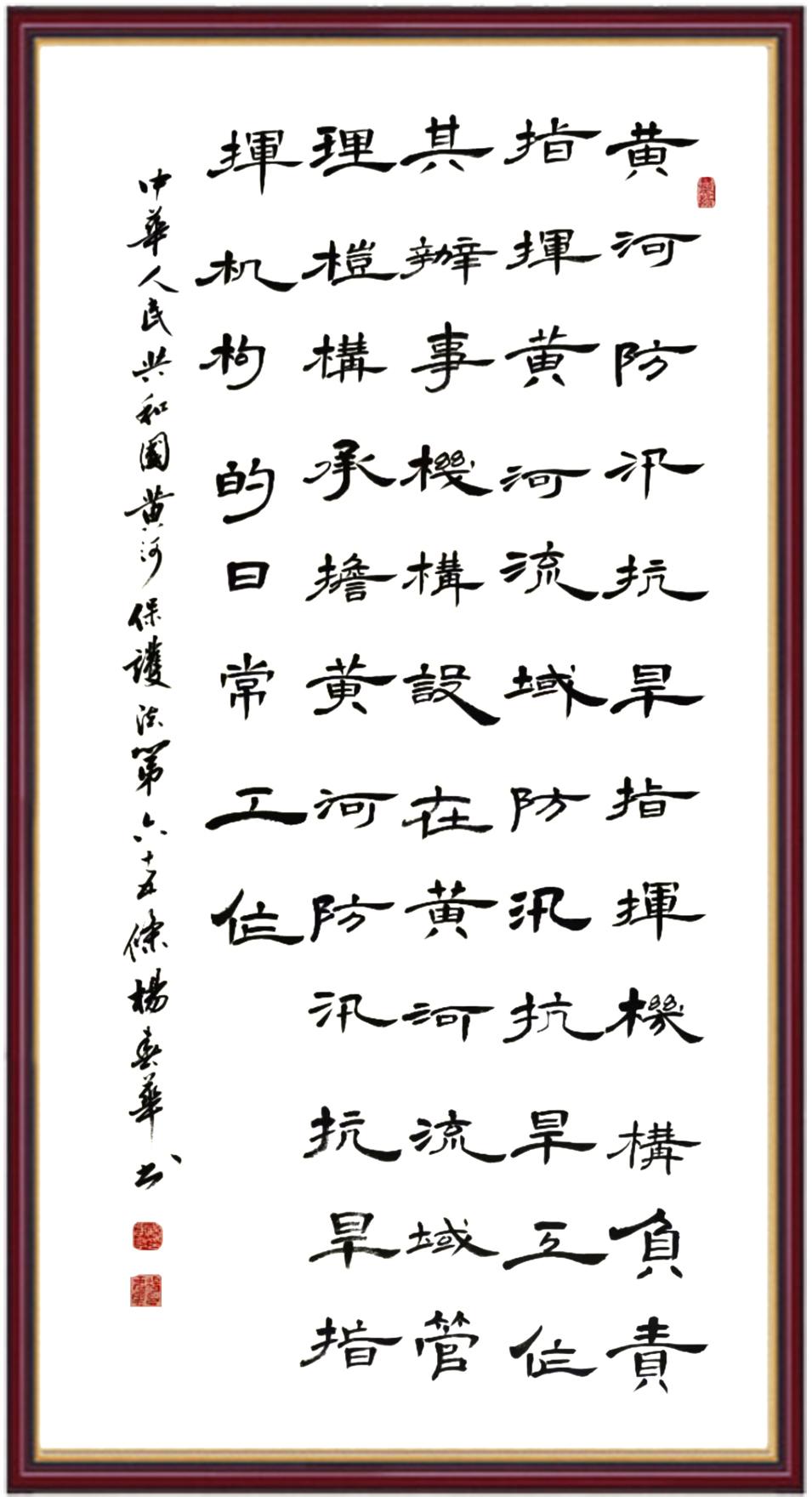 黃河寧,天下平。黃河是中華民族的發(fā)源地和搖籃,保護黃河是事關中華民族偉大復興的千秋大計?!吨腥A人民共和國黃河保護法》為推進水資源節(jié)約集約利用、保護傳承弘揚黃河文化、推動黃河流域生態(tài)保護和高質量發(fā)展提供了有力法治保障。繼書寫《中華人民共和國民法典》《中華人民共和國憲法》《中華人民共和國澳門特別行政區(qū)基本法》《中華人民共和國香港特別行政區(qū)基本法》《中華人民共和國國旗法》《中華人民共和國國徽法》《中華人民共和國國歌法》《中華人民共和國法官法》等法律法規(guī)之后,法制日報社聯(lián)合沿黃九省(區(qū))司法廳、書法家協(xié)會,將筆端對準《中華人民共和國黃河保護法》。