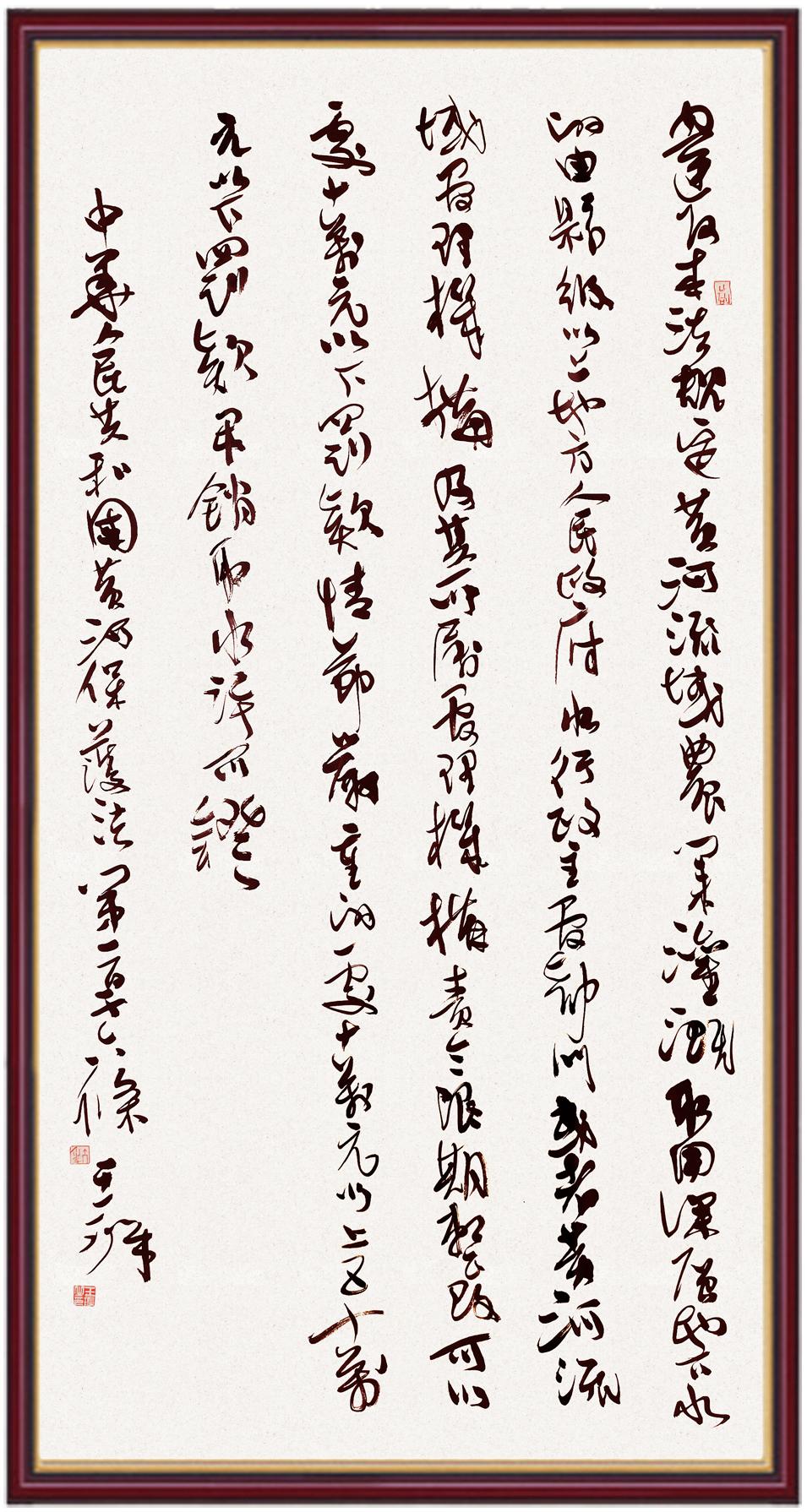 黃河寧,天下平。黃河是中華民族的發(fā)源地和搖籃,保護黃河是事關(guān)中華民族偉大復(fù)興的千秋大計。《中華人民共和國黃河保護法》為推進水資源節(jié)約集約利用、保護傳承弘揚黃河文化、推動黃河流域生態(tài)保護和高質(zhì)量發(fā)展提供了有力法治保障。繼書寫《中華人民共和國民法典》《中華人民共和國憲法》《中華人民共和國澳門特別行政區(qū)基本法》《中華人民共和國香港特別行政區(qū)基本法》《中華人民共和國國旗法》《中華人民共和國國徽法》《中華人民共和國國歌法》《中華人民共和國法官法》等法律法規(guī)之后,法制日報社聯(lián)合沿黃九省(區(qū))司法廳、書法家協(xié)會,將筆端對準《中華人民共和國黃河保護法》。