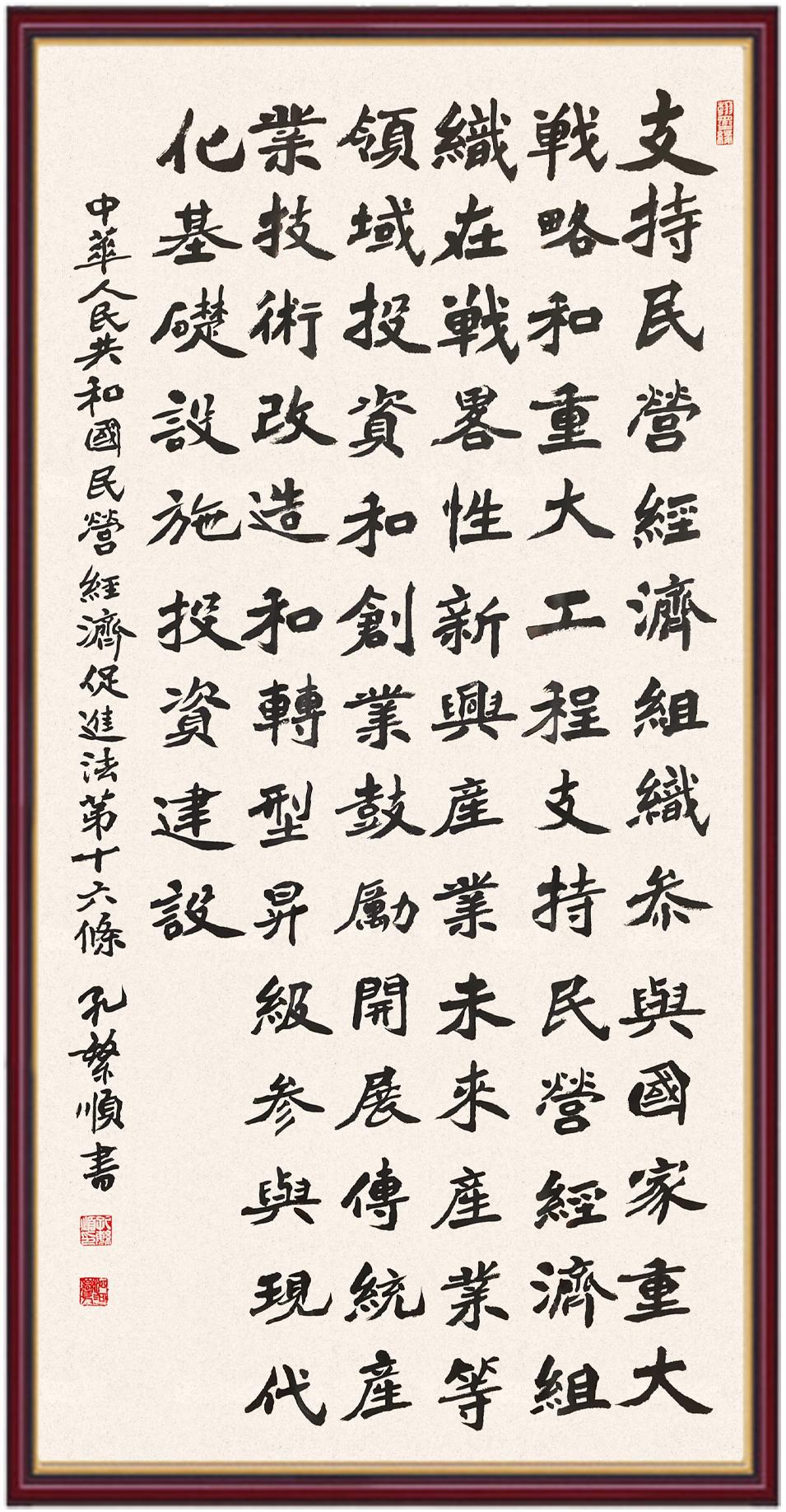 《中華人民共和國民營經(jīng)濟(jì)促進(jìn)法》自今年5月20日起施行。作為我國首部專門關(guān)于民營經(jīng)濟(jì)發(fā)展的基礎(chǔ)性法律,民營經(jīng)濟(jì)促進(jìn)法將支持和保障民營經(jīng)濟(jì)發(fā)展的法律制度融入中國特色社會(huì)主義法律體系,具有重大的法治意義,為促進(jìn)民營經(jīng)濟(jì)持續(xù)、健康、高質(zhì)量發(fā)展提供了堅(jiān)實(shí)的法治保障。為更好地學(xué)習(xí)、宣傳、貫徹這部法律,法治日?qǐng)?bào)社聯(lián)合司法部普法與依法治理局,開展“‘書·法’系列活動(dòng)之書寫《中華人民共和國民營經(jīng)濟(jì)促進(jìn)法》”活動(dòng)。