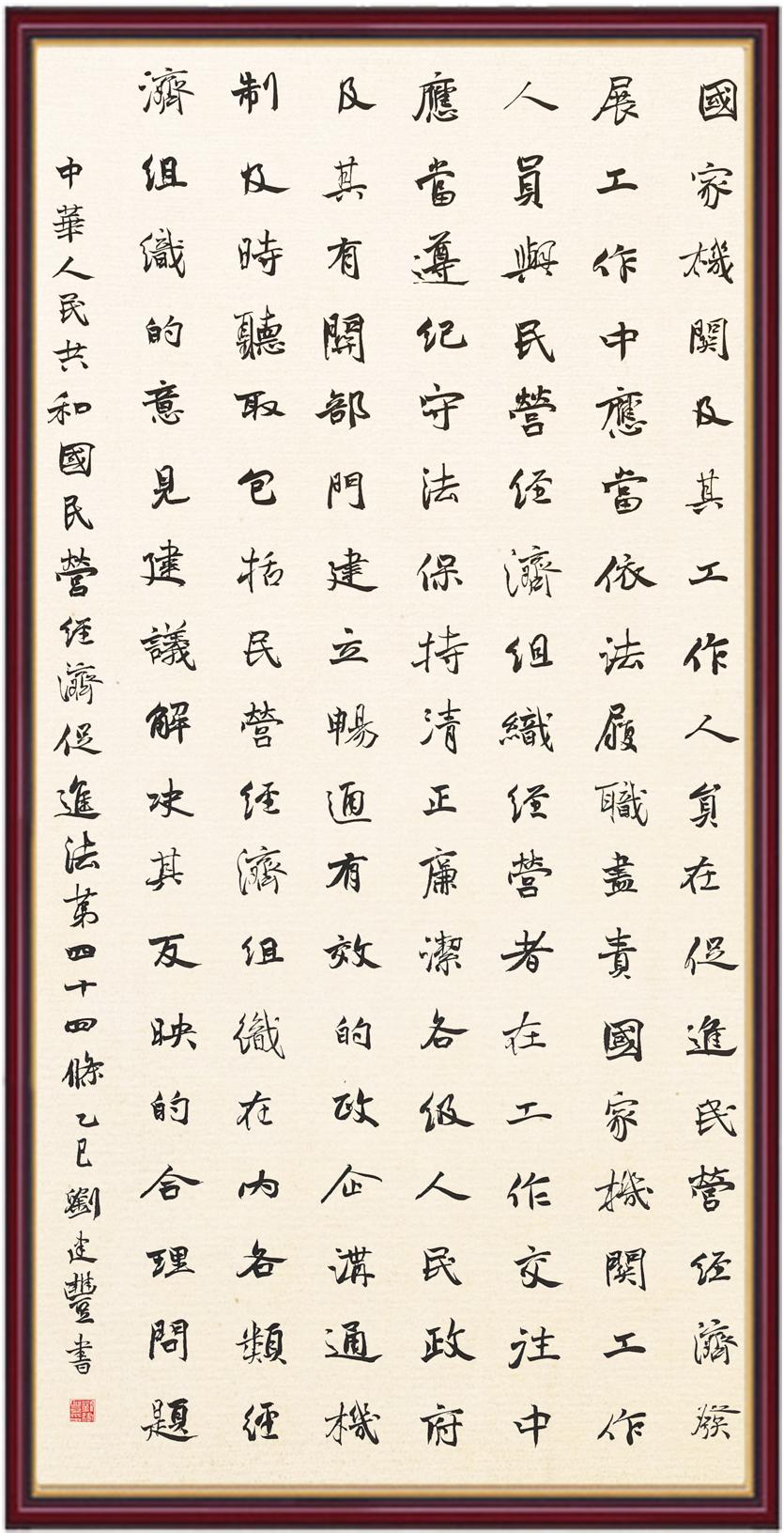 《中華人民共和國民營經(jīng)濟促進法》自今年5月20日起施行。作為我國首部專門關(guān)于民營經(jīng)濟發(fā)展的基礎(chǔ)性法律,民營經(jīng)濟促進法將支持和保障民營經(jīng)濟發(fā)展的法律制度融入中國特色社會主義法律體系,具有重大的法治意義,為促進民營經(jīng)濟持續(xù)、健康、高質(zhì)量發(fā)展提供了堅實的法治保障。為更好地學(xué)習(xí)、宣傳、貫徹這部法律,法治日報社聯(lián)合司法部普法與依法治理局,開展“‘書·法’系列活動之書寫《中華人民共和國民營經(jīng)濟促進法》”活動。