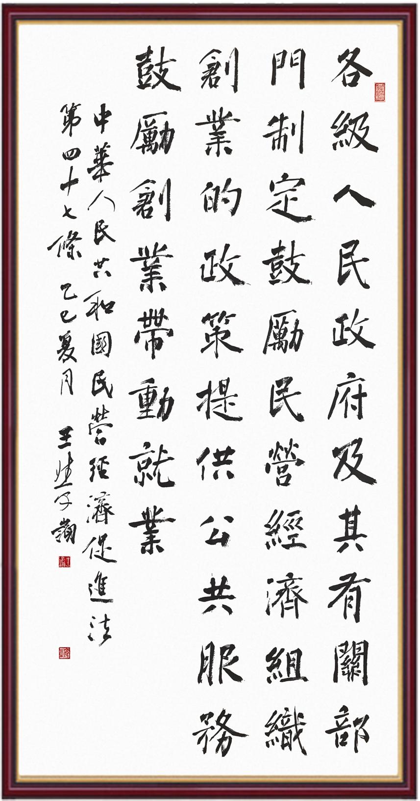 《中華人民共和國民營經(jīng)濟(jì)促進(jìn)法》自今年5月20日起施行。作為我國首部專門關(guān)于民營經(jīng)濟(jì)發(fā)展的基礎(chǔ)性法律,民營經(jīng)濟(jì)促進(jìn)法將支持和保障民營經(jīng)濟(jì)發(fā)展的法律制度融入中國特色社會主義法律體系,具有重大的法治意義,為促進(jìn)民營經(jīng)濟(jì)持續(xù)、健康、高質(zhì)量發(fā)展提供了堅(jiān)實(shí)的法治保障。為更好地學(xué)習(xí)、宣傳、貫徹這部法律,法治日報(bào)社聯(lián)合司法部普法與依法治理局,開展“‘書·法’系列活動之書寫《中華人民共和國民營經(jīng)濟(jì)促進(jìn)法》”活動。