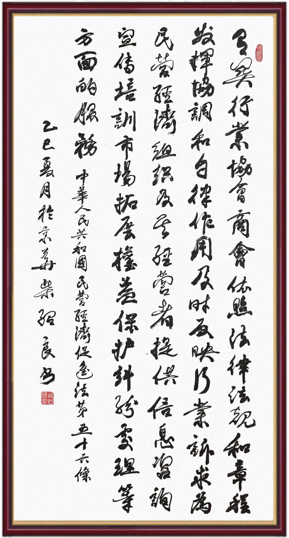 《中華人民共和國(guó)民營(yíng)經(jīng)濟(jì)促進(jìn)法》自今年5月20日起施行。作為我國(guó)首部專(zhuān)門(mén)關(guān)于民營(yíng)經(jīng)濟(jì)發(fā)展的基礎(chǔ)性法律,民營(yíng)經(jīng)濟(jì)促進(jìn)法將支持和保障民營(yíng)經(jīng)濟(jì)發(fā)展的法律制度融入中國(guó)特色社會(huì)主義法律體系,具有重大的法治意義,為促進(jìn)民營(yíng)經(jīng)濟(jì)持續(xù)、健康、高質(zhì)量發(fā)展提供了堅(jiān)實(shí)的法治保障。為更好地學(xué)習(xí)、宣傳、貫徹這部法律,法治日?qǐng)?bào)社聯(lián)合司法部普法與依法治理局,開(kāi)展“‘書(shū)·法’系列活動(dòng)之書(shū)寫(xiě)《中華人民共和國(guó)民營(yíng)經(jīng)濟(jì)促進(jìn)法》”活動(dòng)。