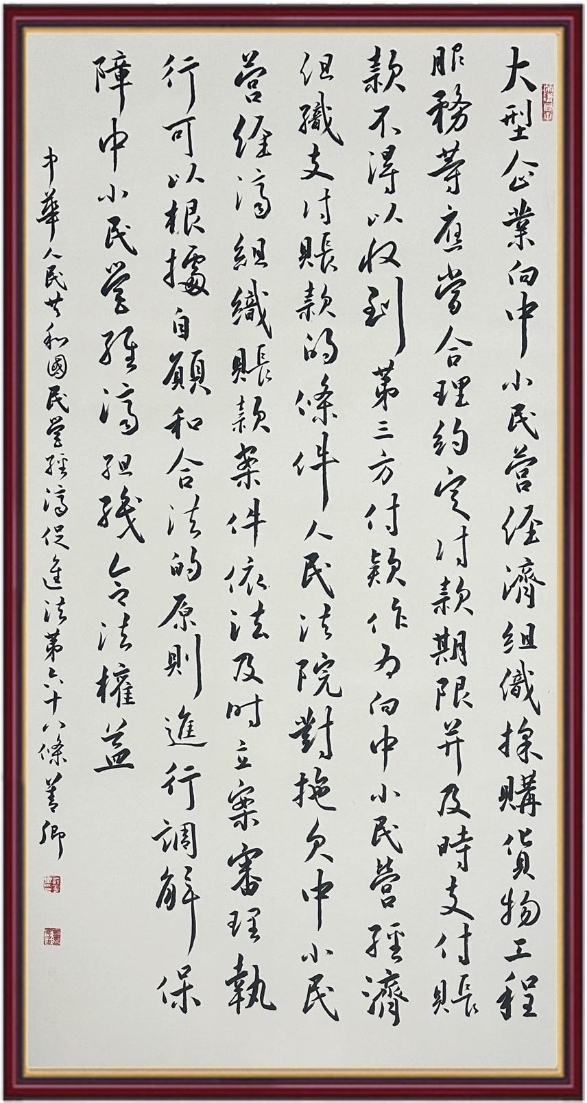 《中華人民共和國(guó)民營(yíng)經(jīng)濟(jì)促進(jìn)法》自今年5月20日起施行。作為我國(guó)首部專(zhuān)門(mén)關(guān)于民營(yíng)經(jīng)濟(jì)發(fā)展的基礎(chǔ)性法律,民營(yíng)經(jīng)濟(jì)促進(jìn)法將支持和保障民營(yíng)經(jīng)濟(jì)發(fā)展的法律制度融入中國(guó)特色社會(huì)主義法律體系,具有重大的法治意義,為促進(jìn)民營(yíng)經(jīng)濟(jì)持續(xù)、健康、高質(zhì)量發(fā)展提供了堅(jiān)實(shí)的法治保障。為更好地學(xué)習(xí)、宣傳、貫徹這部法律,法治日?qǐng)?bào)社聯(lián)合司法部普法與依法治理局,開(kāi)展“‘書(shū)·法’系列活動(dòng)之書(shū)寫(xiě)《中華人民共和國(guó)民營(yíng)經(jīng)濟(jì)促進(jìn)法》”活動(dòng)。