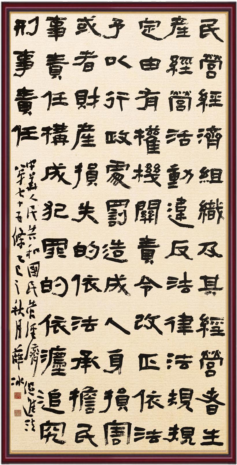 2020年7月11日,由法治日報社主辦、法報文化傳媒(北京)有限公司和北京千音文化傳媒有限公司聯(lián)合承辦的“書·法”系列活動正式啟動?!皶しā被顒又荚跒閯?chuàng)新法治宣傳教育,多開一點腦洞、多花一點心思、多出一點力量、多作一點貢獻,引領和推動更多的人拿起筆來學法、寫法,在不斷“書·法”過程中,提升自身的法治素養(yǎng),在全社會弘揚法治精神。先后書寫《中華人民共和國民法典》《中華人民共和國憲法》《中華人民共和國澳門特別行政區(qū)基本法》《中華人民共和國香港特別行政區(qū)基本法》《中華人民共和國國旗法》《中華人民共和國國徽法》《中華人民共和國國歌法》《中華人民共和國法官法》《中華人民共和國黃河保護法》等19部法律法規(guī)。
