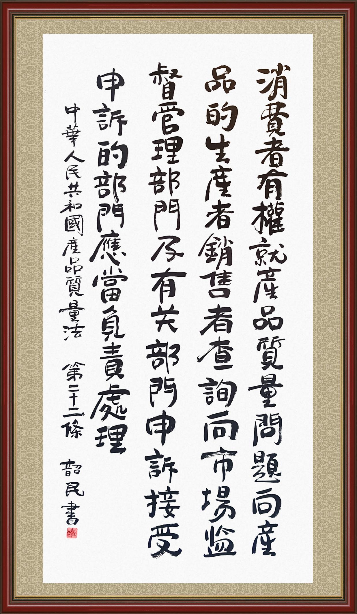 《中華人民共和國產(chǎn)品質(zhì)量法》自1993年9月1日起開始施行,先后進(jìn)行三次修正。作為產(chǎn)品質(zhì)量領(lǐng)域的基本法律,產(chǎn)品質(zhì)量法對(duì)規(guī)范產(chǎn)品質(zhì)量管理、維護(hù)消費(fèi)者合法權(quán)益、促進(jìn)經(jīng)濟(jì)社會(huì)發(fā)展具有重要意義。為更好地學(xué)習(xí)、宣傳、貫徹這部法律,在國家市場(chǎng)監(jiān)督管理總局法規(guī)司的支持下,法治日?qǐng)?bào)社開展了“‘書·法’系列活動(dòng)之書寫《中華人民共和國產(chǎn)品質(zhì)量法》”活動(dòng)。
