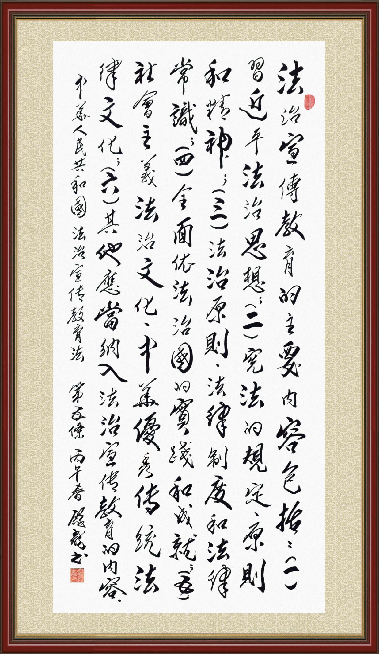 2020年7月11日,由法治日報社主辦的“書·法”系列活動正式啟動,先后書寫《中華人民共和國民法典》《中華人民共和國憲法》《中華人民共和國民營經(jīng)濟促進法》等21部法律法規(guī)。