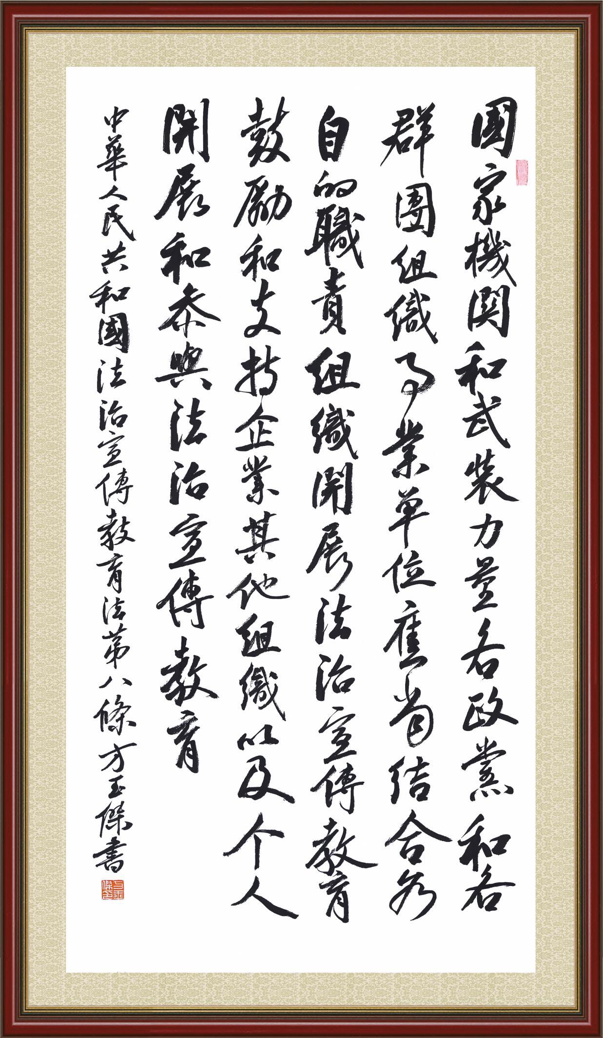 2020年7月11日,由法治日?qǐng)?bào)社主辦的“書·法”系列活動(dòng)正式啟動(dòng),先后書寫《中華人民共和國(guó)民法典》《中華人民共和國(guó)憲法》《中華人民共和國(guó)民營(yíng)經(jīng)濟(jì)促進(jìn)法》等21部法律法規(guī)。