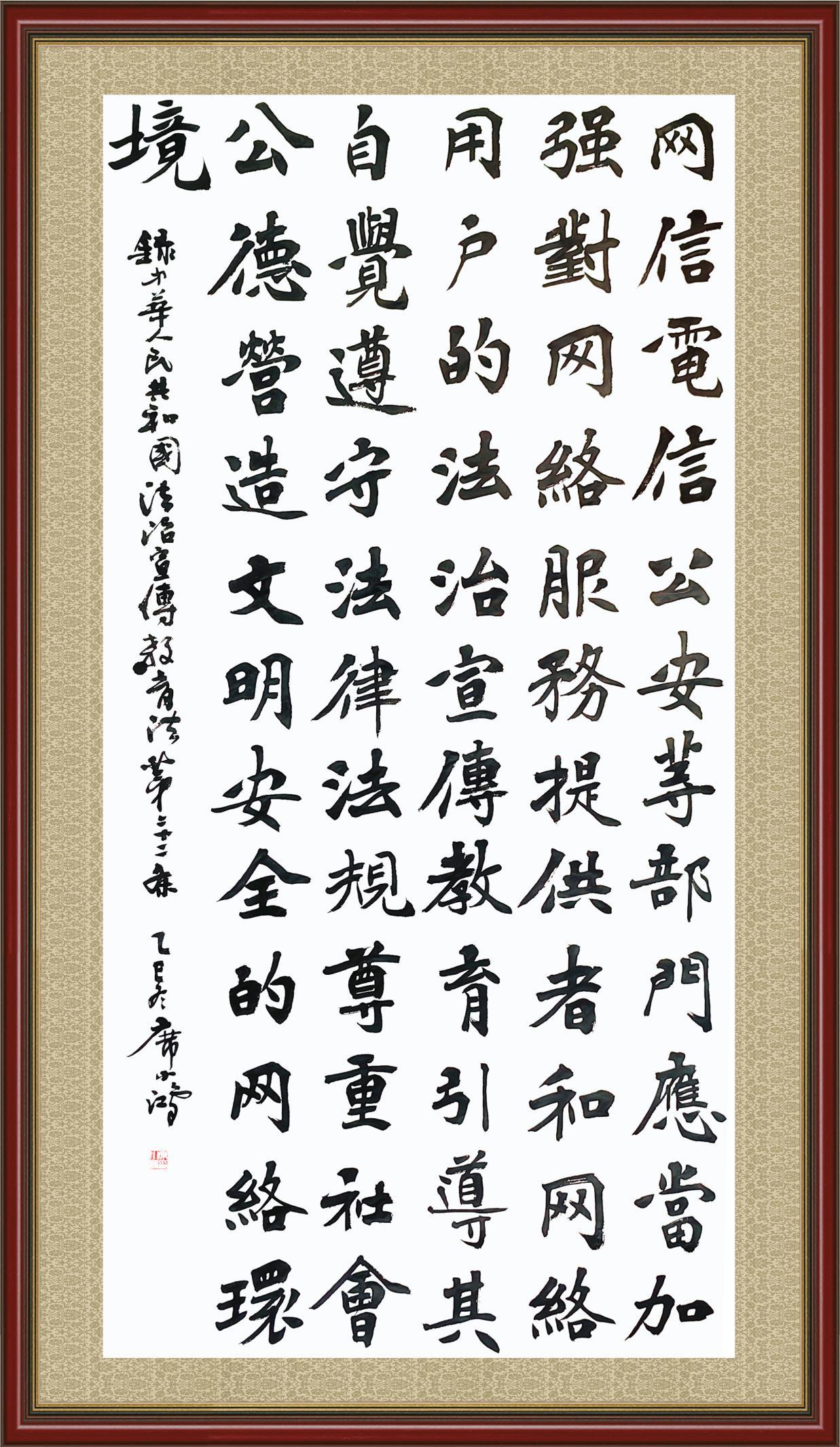 2020年7月11日,由法治日報(bào)社主辦的“書·法”系列活動正式啟動,先后書寫《中華人民共和國民法典》《中華人民共和國憲法》《中華人民共和國民營經(jīng)濟(jì)促進(jìn)法》等21部法律法規(guī)。