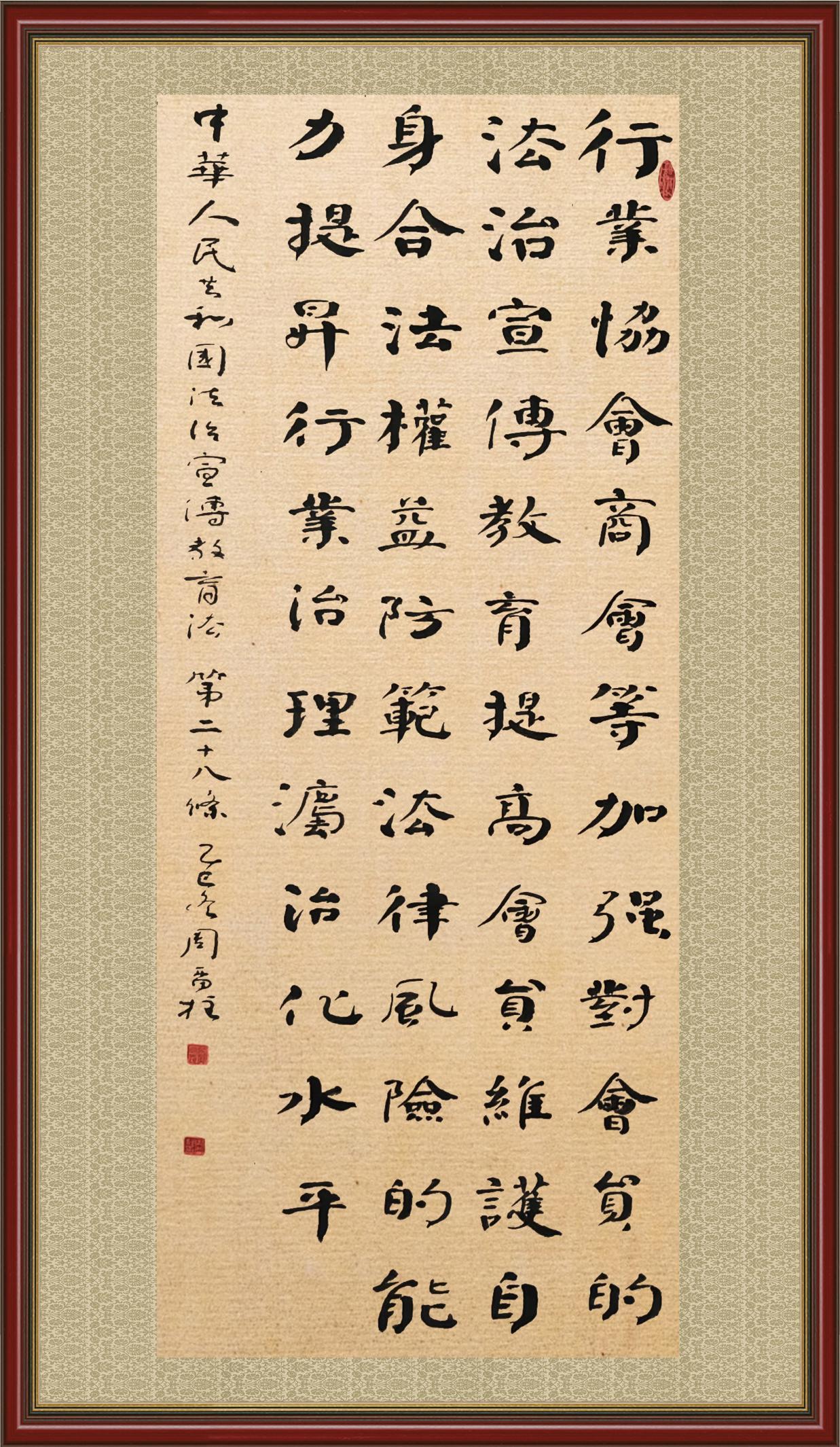 2020年7月11日,由法治日?qǐng)?bào)社主辦的“書(shū)·法”系列活動(dòng)正式啟動(dòng),先后書(shū)寫(xiě)《中華人民共和國(guó)民法典》《中華人民共和國(guó)憲法》《中華人民共和國(guó)民營(yíng)經(jīng)濟(jì)促進(jìn)法》等21部法律法規(guī)。