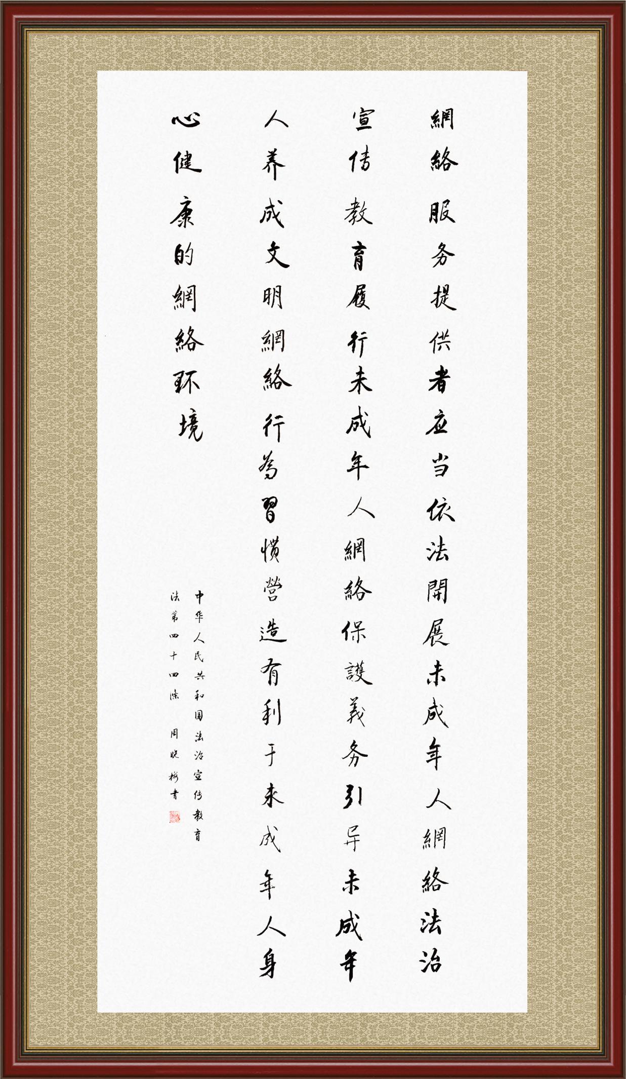 《中華人民共和國法治宣傳教育法》自2025年11月1日起開始施行。法治宣傳教育是全面依法治國的長期基礎性工作。法治宣傳教育法對提升全民法治素養(yǎng)和社會治理法治化水平、推動建設更高水平的社會主義法治國家具有重要意義。為更好地學習、宣傳、貫徹這部法律,法治日報社聯(lián)合司法部普法與依法治理局,開展了“‘書·法’系列活動之書寫《中華人民共和國法治宣傳教育法》”活動。