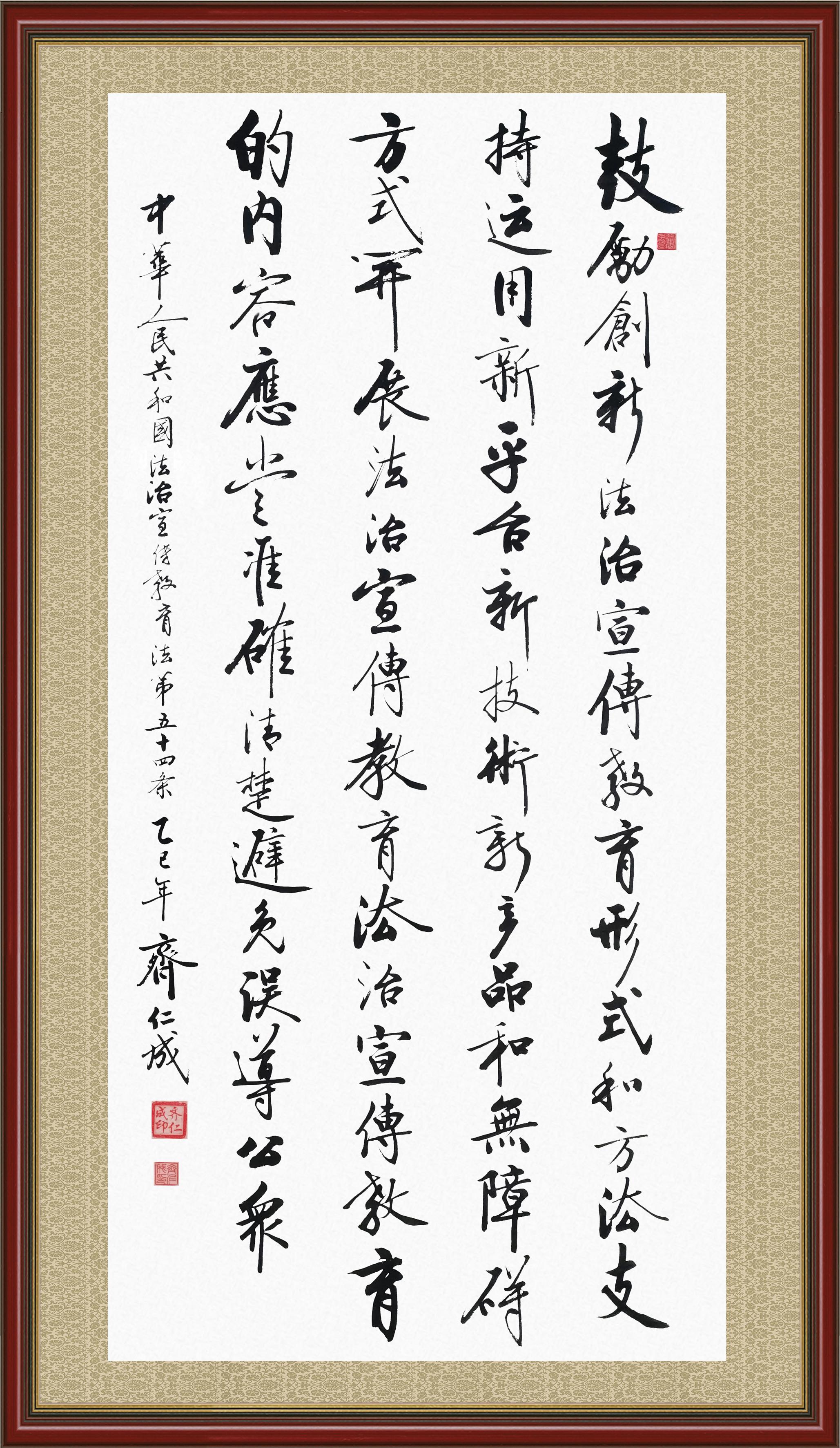 《中華人民共和國法治宣傳教育法》自2025年11月1日起開始施行。法治宣傳教育是全面依法治國的長期基礎性工作。法治宣傳教育法對提升全民法治素養(yǎng)和社會治理法治化水平、推動建設更高水平的社會主義法治國家具有重要意義。為更好地學習、宣傳、貫徹這部法律,法治日報社聯(lián)合司法部普法與依法治理局,開展了“‘書·法’系列活動之書寫《中華人民共和國法治宣傳教育法》”活動。