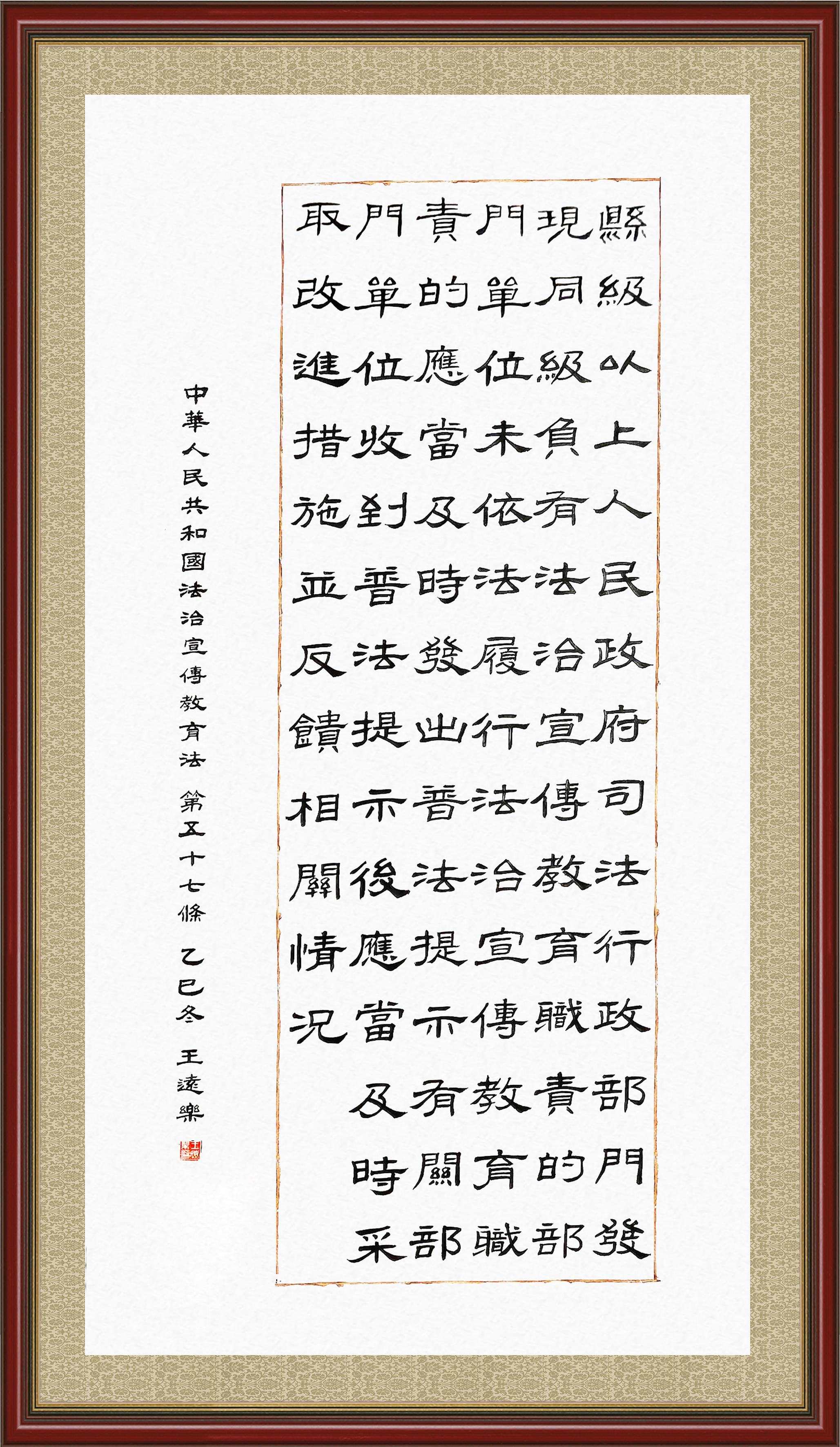 《中華人民共和國法治宣傳教育法》自2025年11月1日起開始施行。法治宣傳教育是全面依法治國的長期基礎(chǔ)性工作。法治宣傳教育法對提升全民法治素養(yǎng)和社會治理法治化水平、推動建設(shè)更高水平的社會主義法治國家具有重要意義。為更好地學(xué)習(xí)、宣傳、貫徹這部法律,法治日報社聯(lián)合司法部普法與依法治理局,開展了“‘書·法’系列活動之書寫《中華人民共和國法治宣傳教育法》”活動。