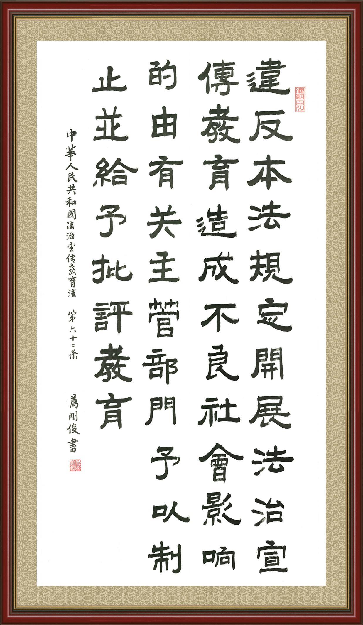2020年7月11日,由法治日?qǐng)?bào)社主辦的“書·法”系列活動(dòng)正式啟動(dòng),先后書寫《中華人民共和國民法典》《中華人民共和國憲法》《中華人民共和國民營經(jīng)濟(jì)促進(jìn)法》等21部法律法規(guī)。