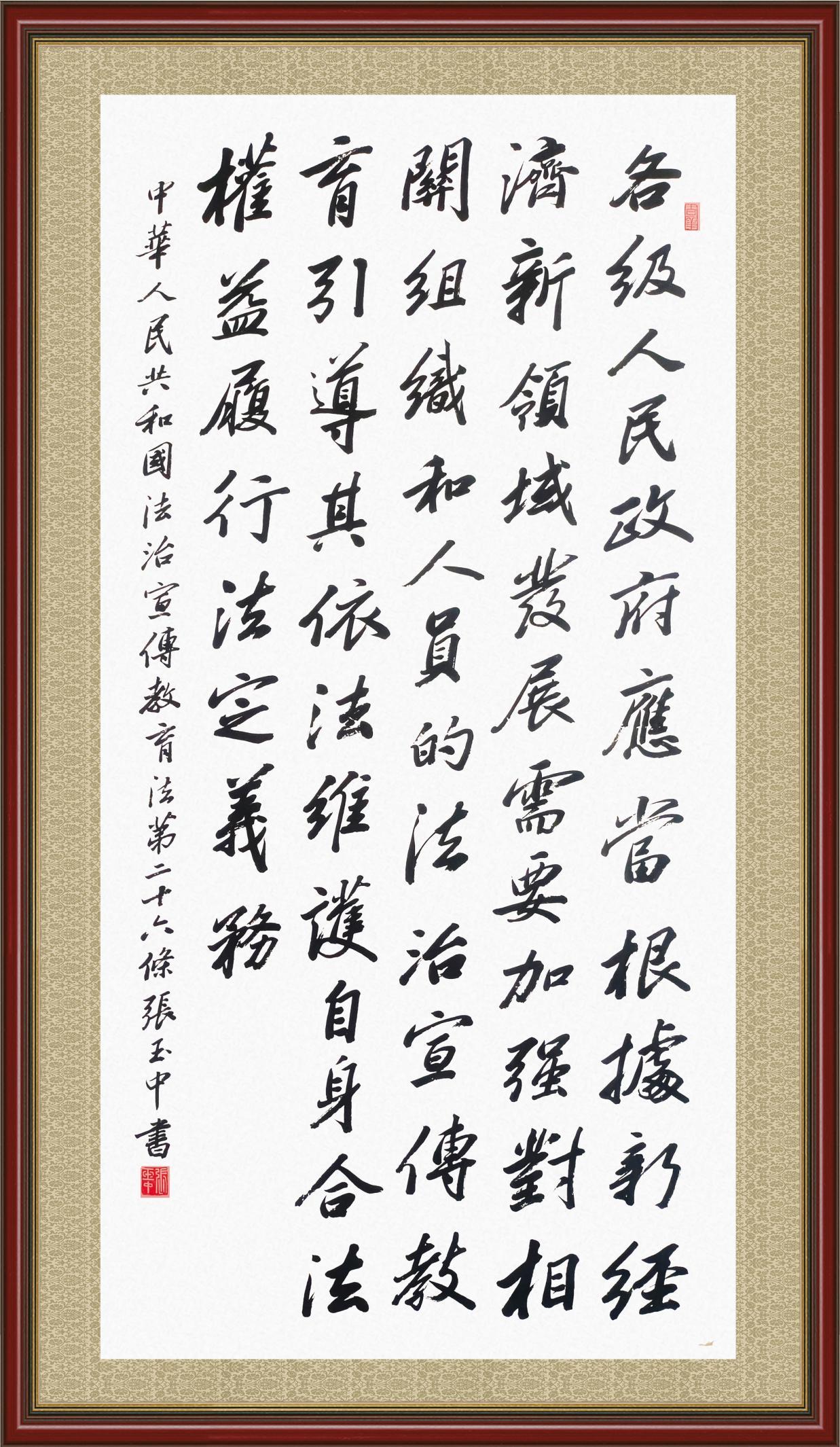 2020年7月11日,由法治日?qǐng)?bào)社主辦的“書(shū)·法”系列活動(dòng)正式啟動(dòng),先后書(shū)寫(xiě)《中華人民共和國(guó)民法典》《中華人民共和國(guó)憲法》《中華人民共和國(guó)民營(yíng)經(jīng)濟(jì)促進(jìn)法》等21部法律法規(guī)。