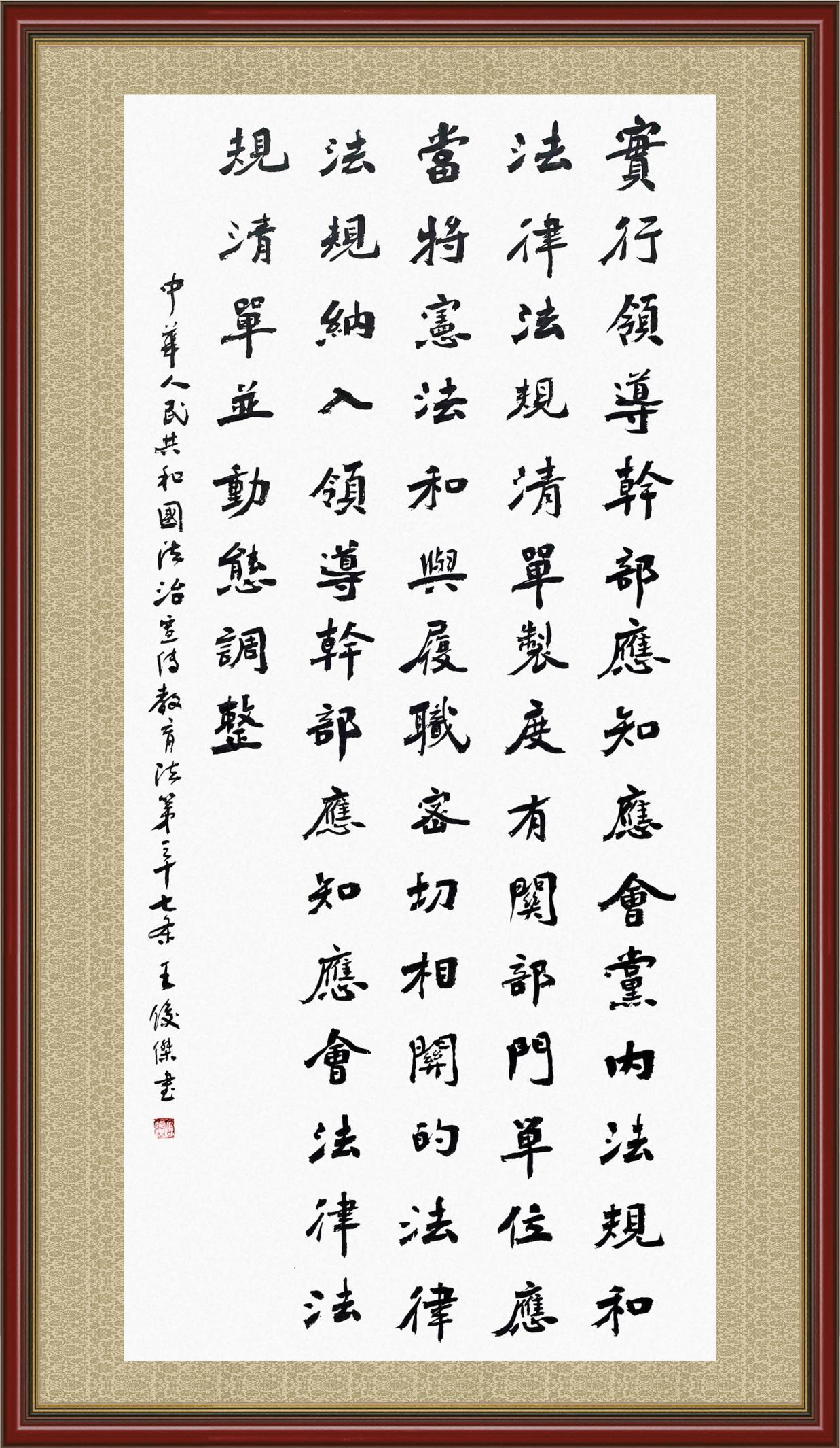2020年7月11日,由法治日報社主辦的“書·法”系列活動正式啟動,先后書寫《中華人民共和國民法典》《中華人民共和國憲法》《中華人民共和國民營經(jīng)濟促進法》等21部法律法規(guī)。