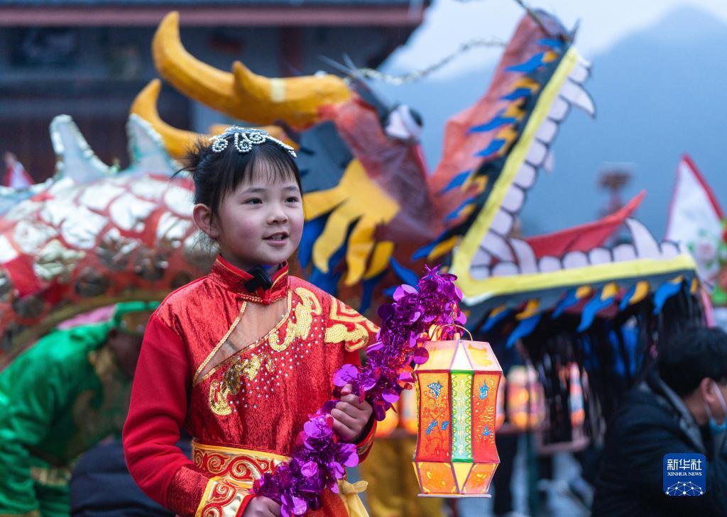 2月2日,浙江省杭州市淳安縣里商鄉(xiāng)的一名小朋友參加里商仁燈元宵巡游。