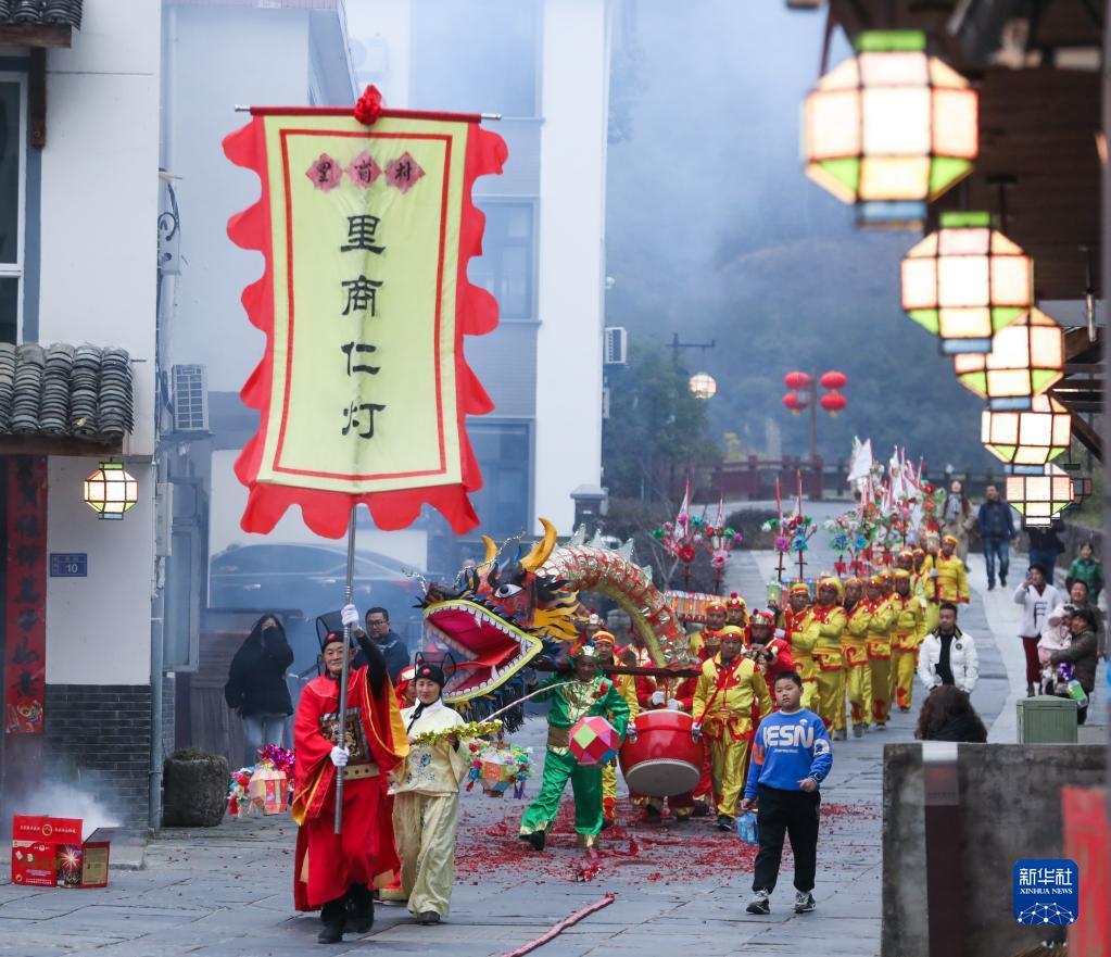 當(dāng)日,浙江省杭州市淳安縣里商鄉(xiāng)舉行2023元宵節(jié)花燈巡游,為當(dāng)?shù)厣洁l(xiāng)增添了熱鬧的元宵氛圍。