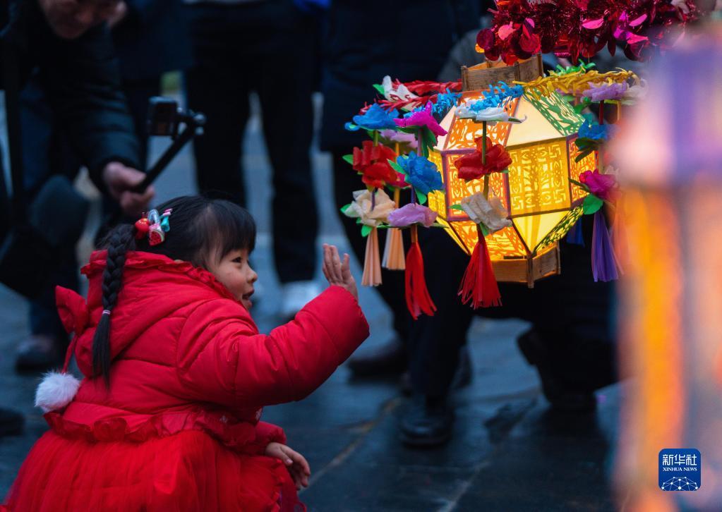 2月2日,在浙江省杭州市淳安縣里商鄉(xiāng),小朋友在觀看里商仁燈。