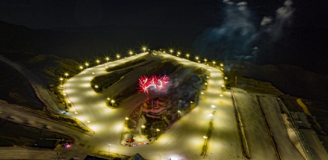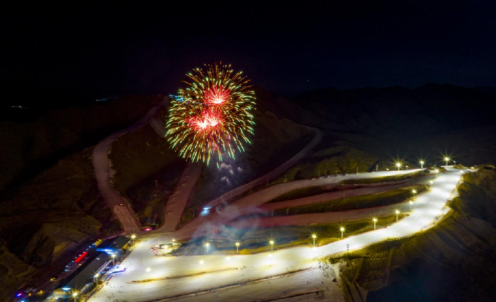 2月5日,馬鬃山滑雪場(chǎng)上演大型雪地?zé)熁ㄐ?,吸引了大量游客觀看。(無(wú)人機(jī)照片)新華網(wǎng)發(fā) (樂(lè)炎 攝)