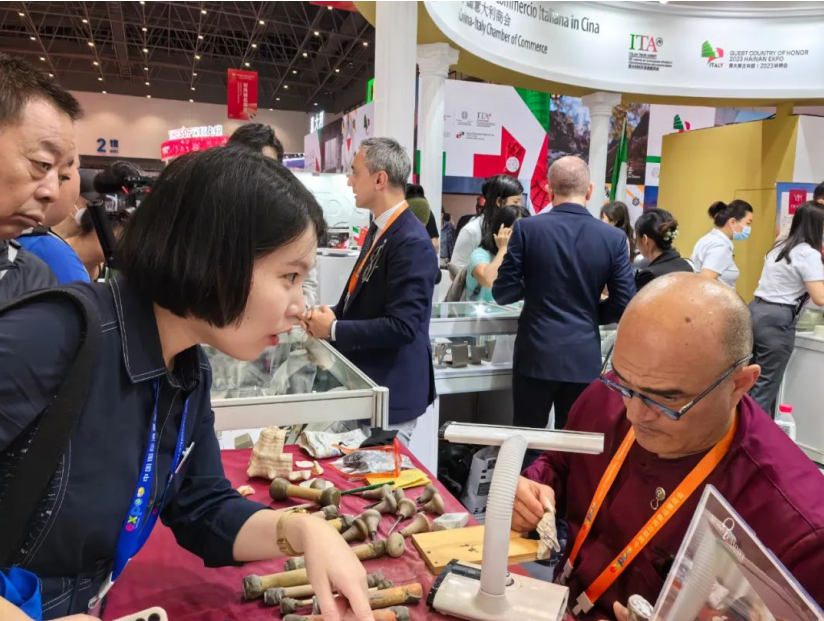 在消博會(huì)展館現(xiàn)場(chǎng),法律服務(wù)團(tuán)成員吳曉嬋律師走訪了第三屆消博會(huì)主賓國(guó)意大利展館,與珠寶品牌Russo Cammei的手工貝雕工匠進(jìn)行愉快交流,向其介紹海南豐富的天然貝殼資源,并表示期待與意大利品牌碰撞出更多的合作機(jī)會(huì)和法律服務(wù)需求。