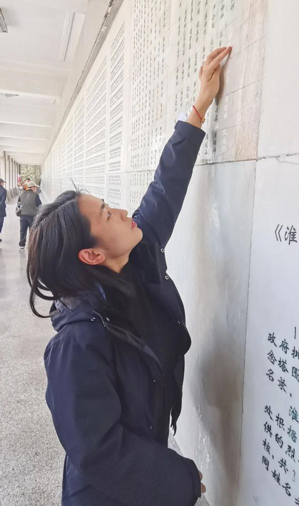 “太爺爺,70多年后,您終于和您的弟弟、戰(zhàn)友們‘團(tuán)聚’了!”3月28日上午,在淮海戰(zhàn)役烈士紀(jì)念塔烈士英名錄前,從江蘇省如皋市趕來的烈士后人尤婷婷,一遍遍輕撫英名錄上太爺爺尤學(xué)禮的名字喃喃自語,眼眶里浸滿了淚水。