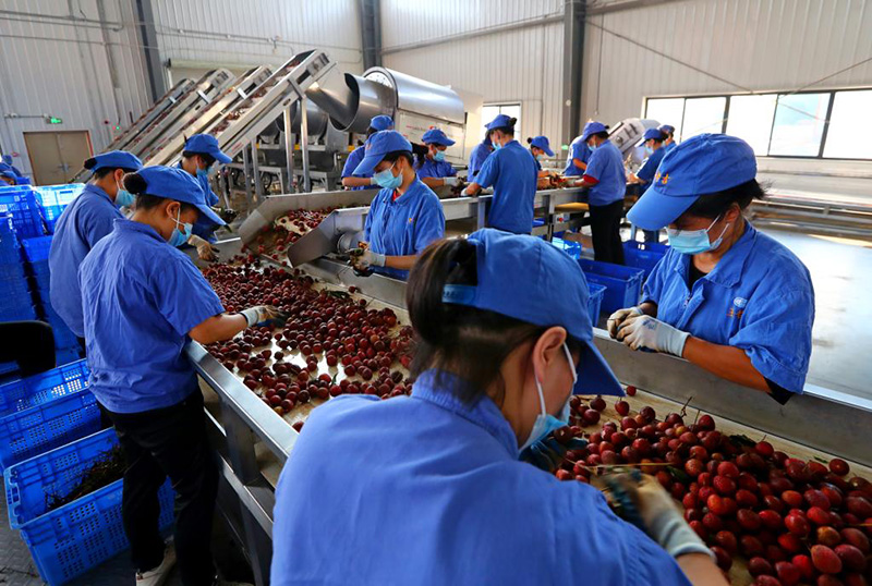 6月12日,工人們?cè)趶V東茂名的廣藥王老吉廣東荔枝(茂名)產(chǎn)業(yè)園生產(chǎn)車間工作。這里的荔枝清汁生產(chǎn)線每天可處理200噸荔枝鮮果。新華社記者龔兵 攝