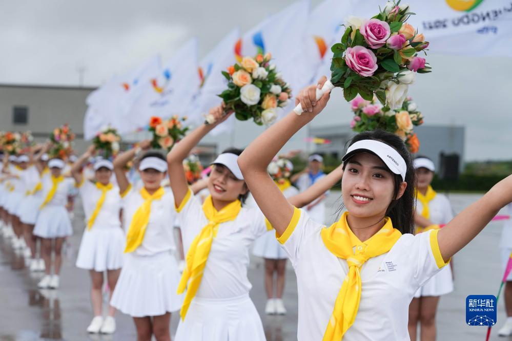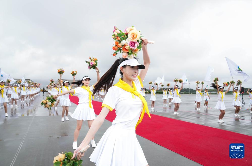 7月27日下午,來華出席成都大運(yùn)會(huì)開幕式并訪問的圭亞那總統(tǒng)阿里抵達(dá)四川省成都市。這是歡迎儀式現(xiàn)場。
