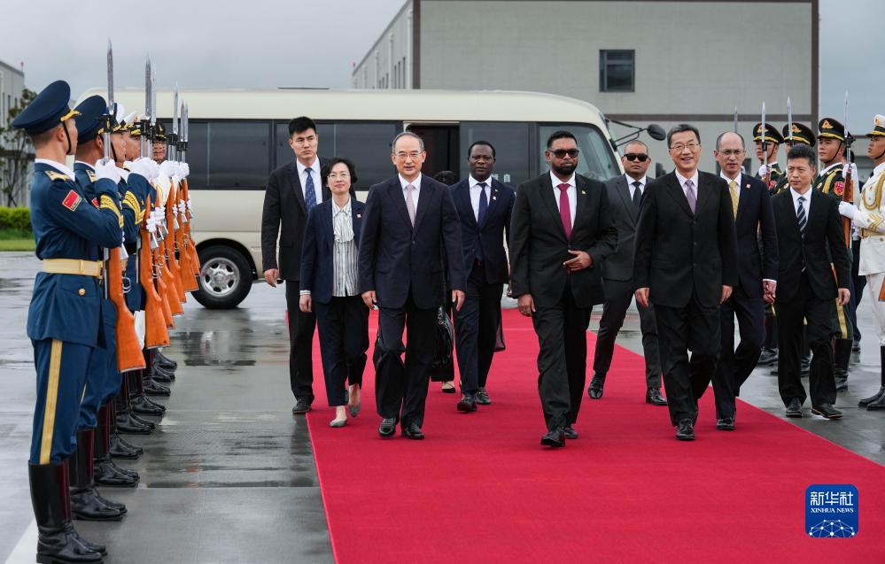 7月27日下午,來華出席成都大運(yùn)會(huì)開幕式并訪問的圭亞那總統(tǒng)阿里抵達(dá)四川省成都市。
