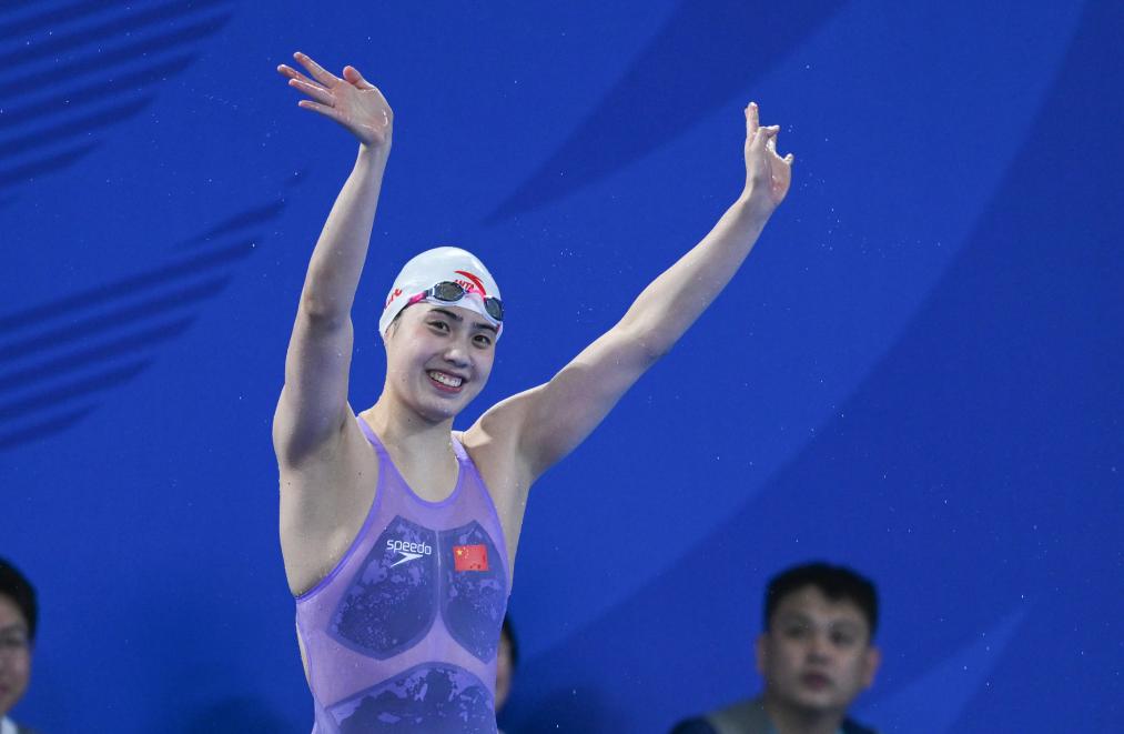 來(lái)自東南大學(xué)的張雨霏堪稱(chēng)“勞?!?,盡管仍處于福岡世錦賽歸來(lái)的疲憊中,卻一天連游多場(chǎng),且每場(chǎng)都穩(wěn)居第一。在傍晚進(jìn)行的女子50米蝶泳決賽中,她的名字在場(chǎng)館電子大屏上甫一出現(xiàn),就引起山呼海嘯般的歡呼,而她也以25秒20的成績(jī)奪金,刷新賽會(huì)紀(jì)錄。