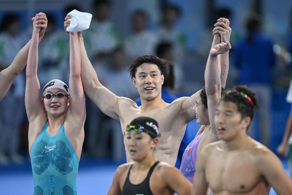 覃海洋賽后說(shuō):“我們每個(gè)人發(fā)揮都挺不錯(cuò)的。今天的成績(jī),得益于中國(guó)游泳隊(duì)和我們團(tuán)隊(duì)一直以來(lái)精益求精的精神,多年堅(jiān)持有了這樣的成果?!?/p>